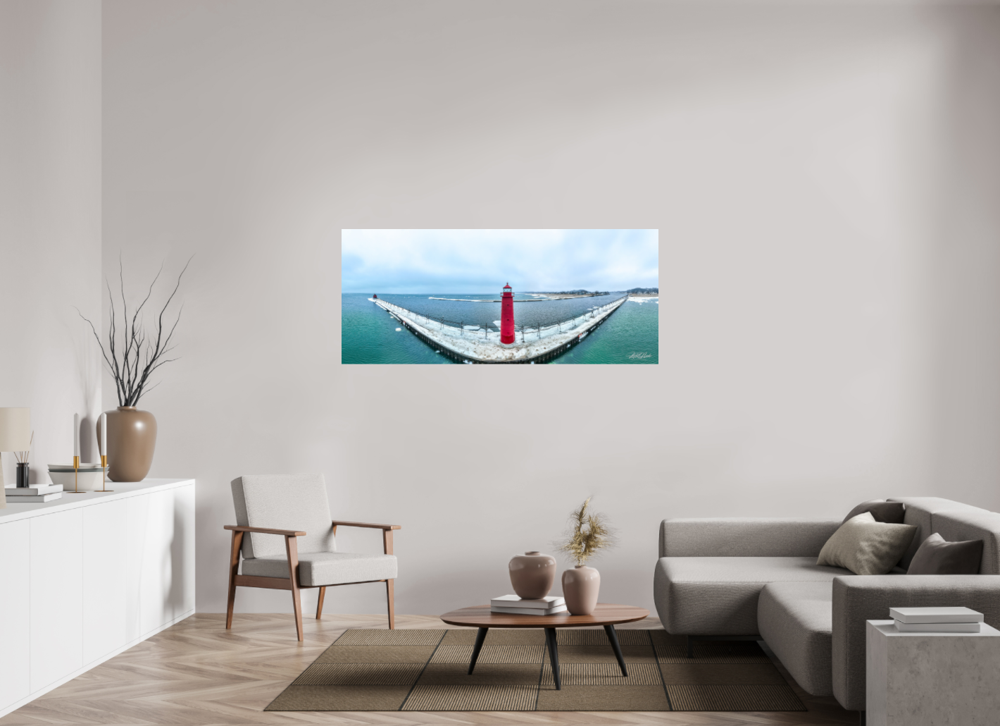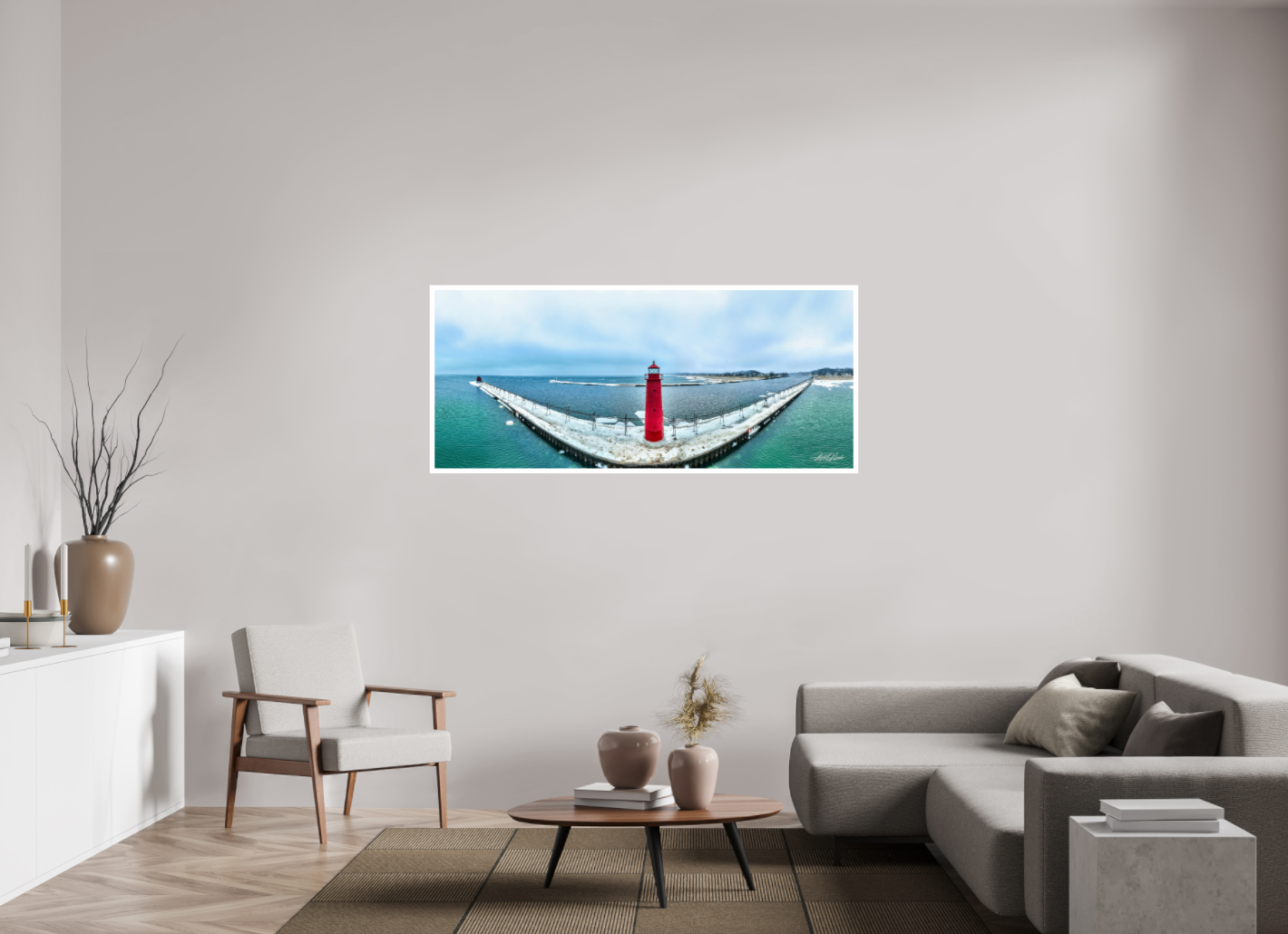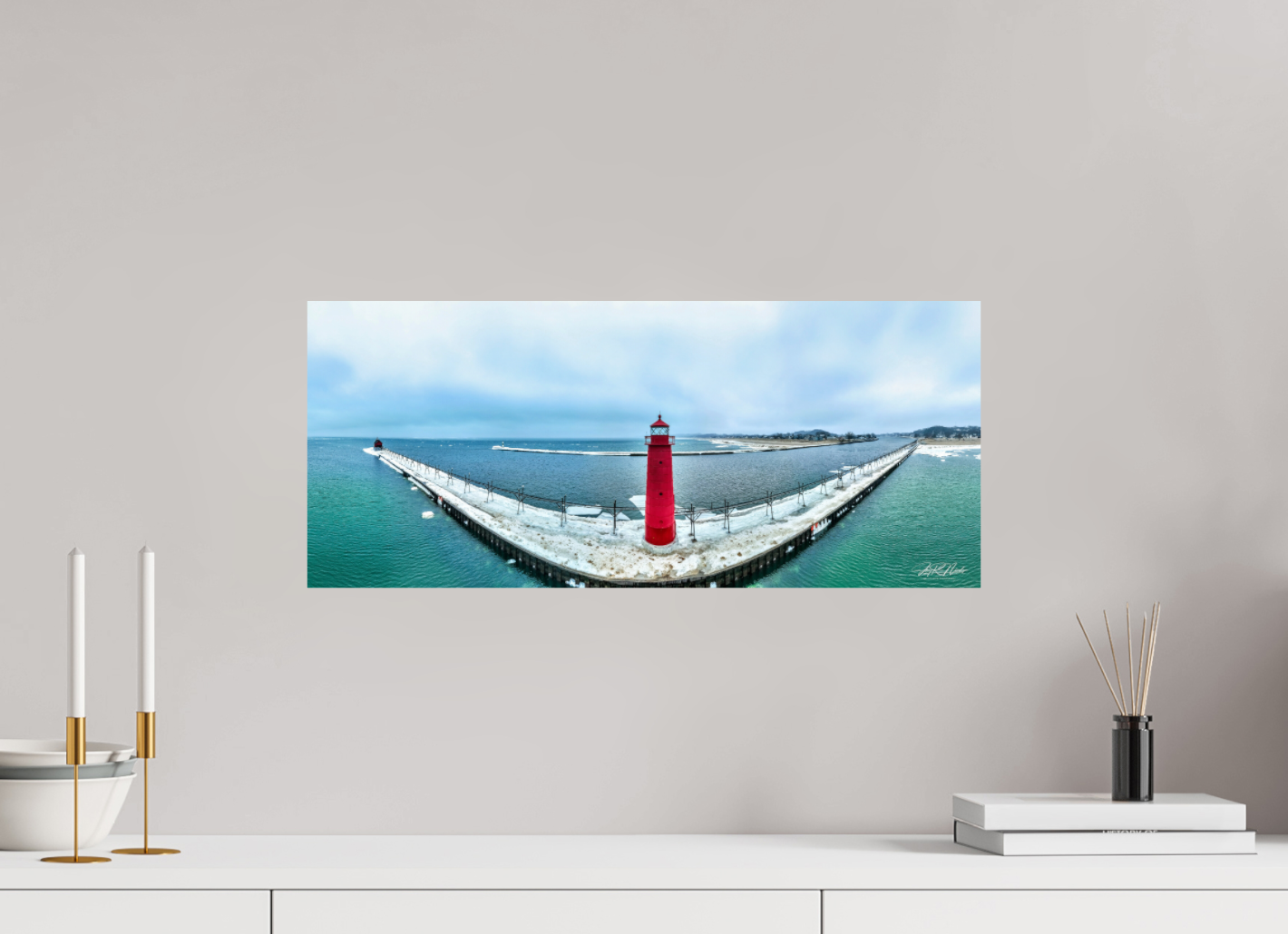 - Cinematic Quality: The high-resolution capture ensures every detail of The Grand Haven North and South Pier is beautifully represented, making it perfect for any wall.