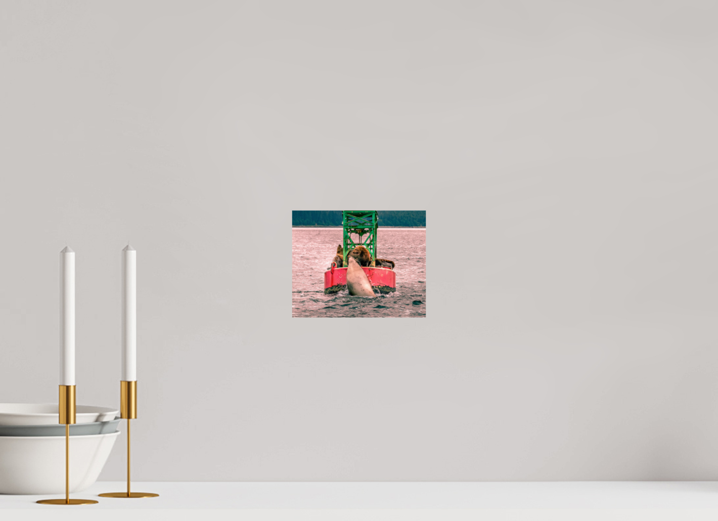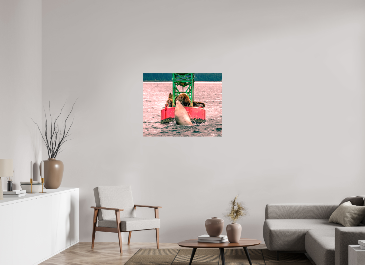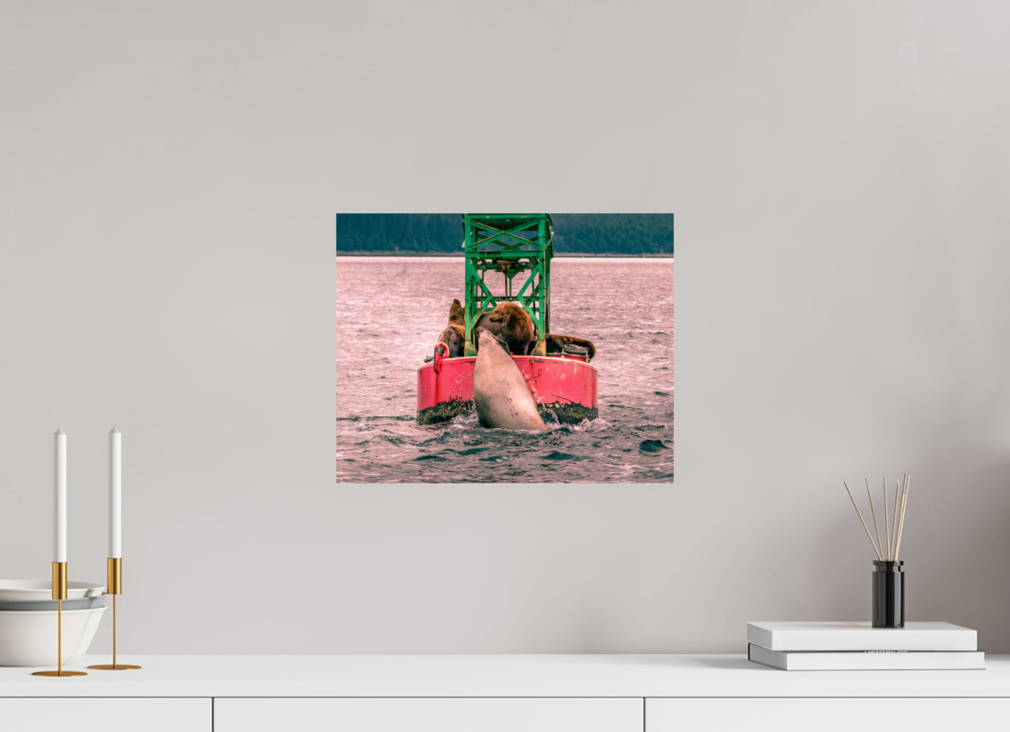 Bring a touch of the wild into your home with the stunning My Buoy fine art print photograph. Captured in the breathtaking inner passage of Alaska, this image showcases the raw beauty of nature, featuring a dominant seal asserting its authority over another trying to board the buoy. This striking visual not only tells a story but also adds an element of intrigue to your space.