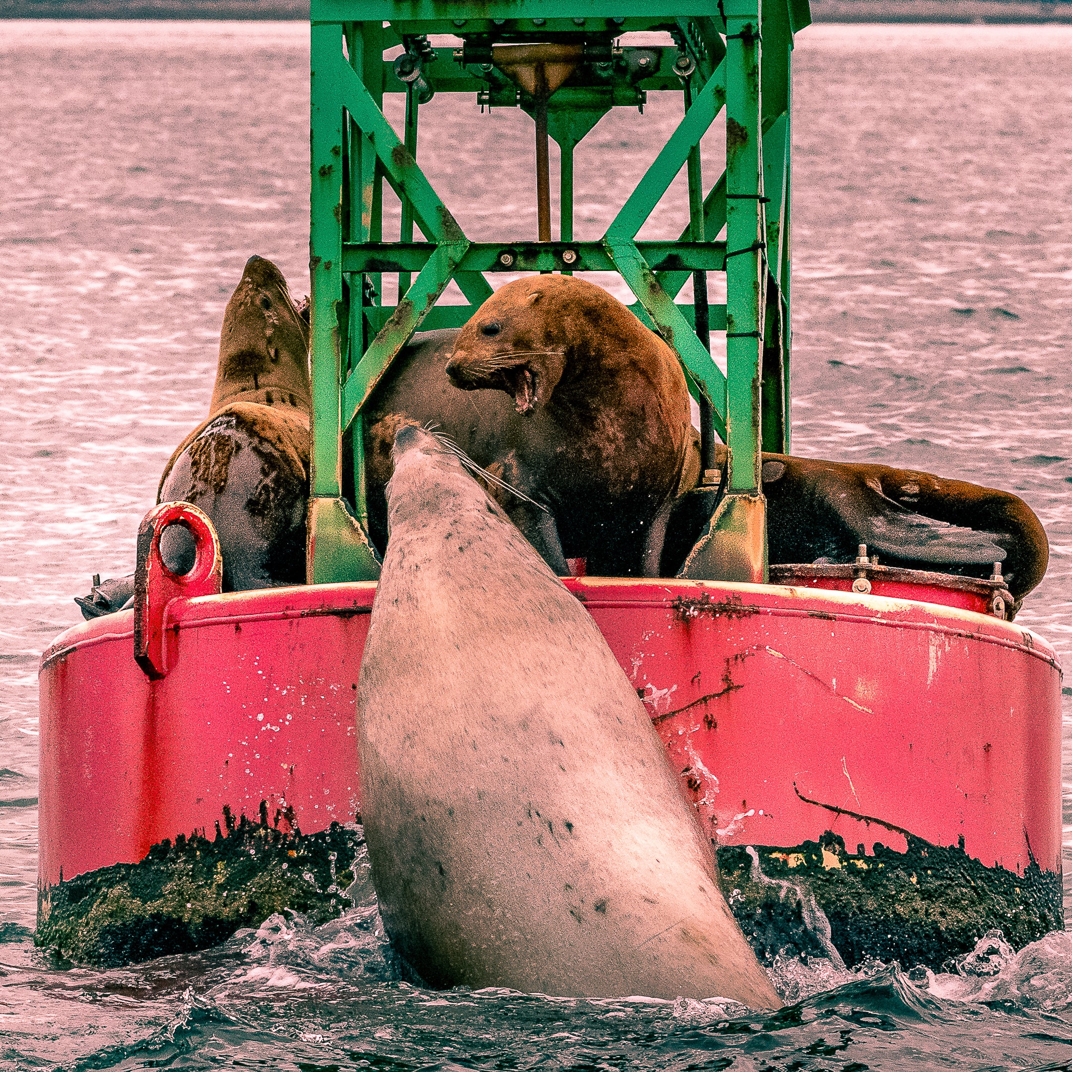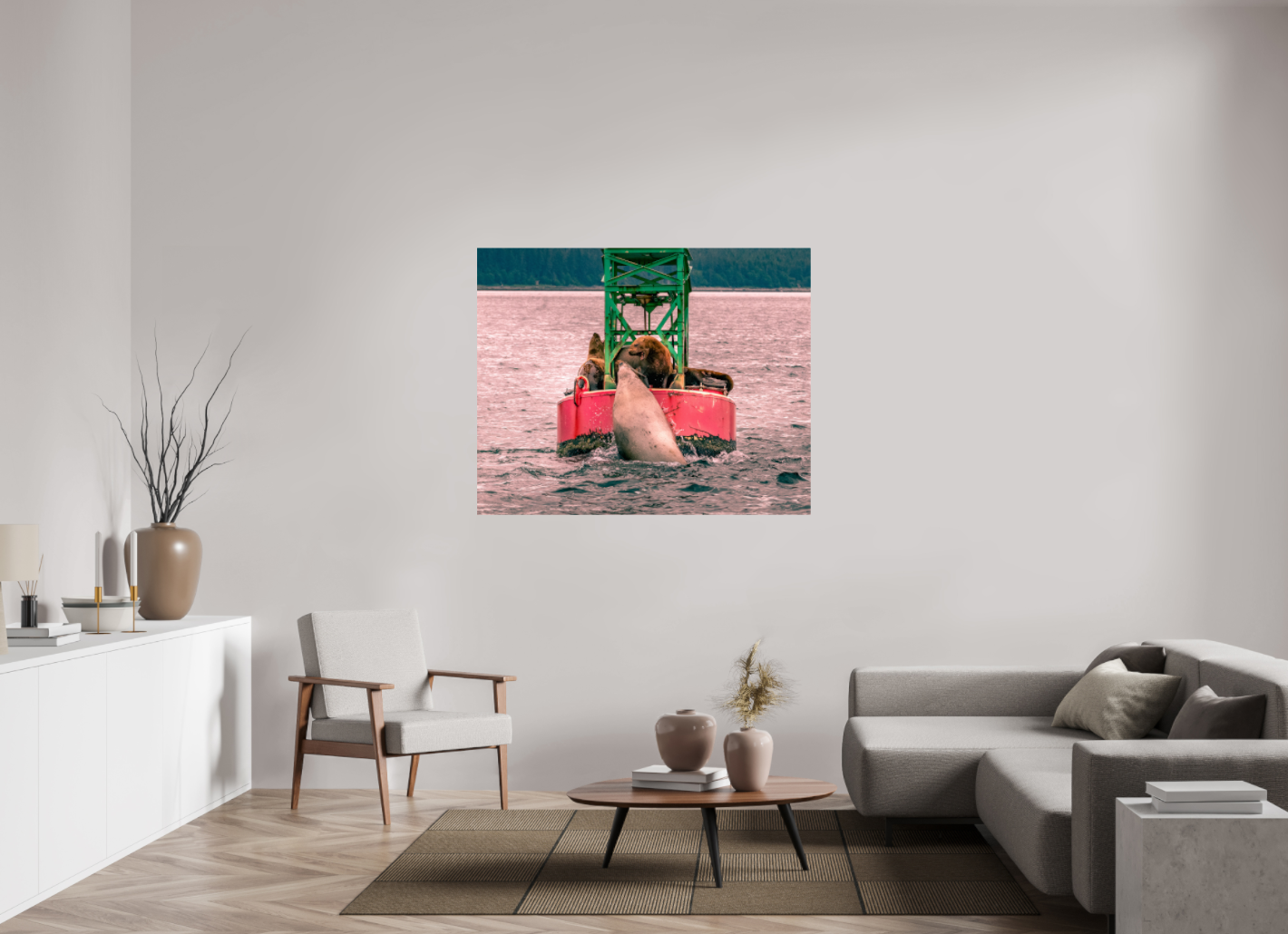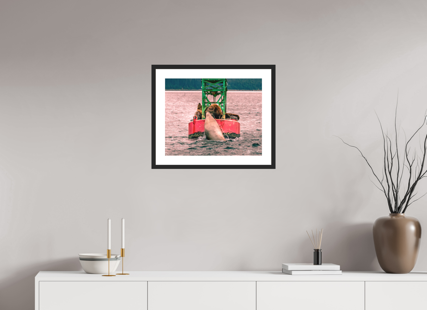 Bring a touch of the wild into your home with the stunning My Buoy fine art print photograph. Captured in the breathtaking inner passage of Alaska, this image showcases the raw beauty of nature, featuring a dominant seal asserting its authority over another trying to board the buoy. This striking visual not only tells a story but also adds an element of intrigue to your space.