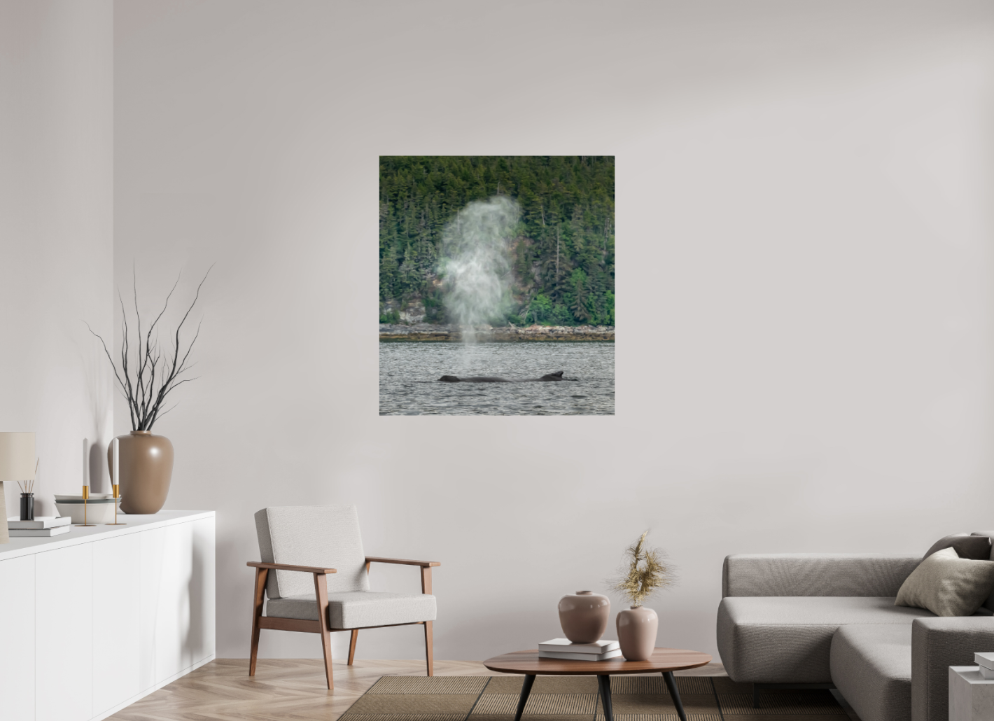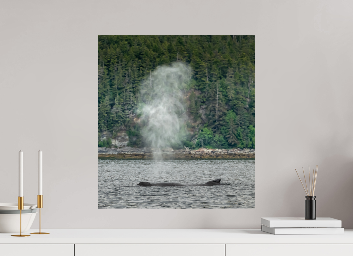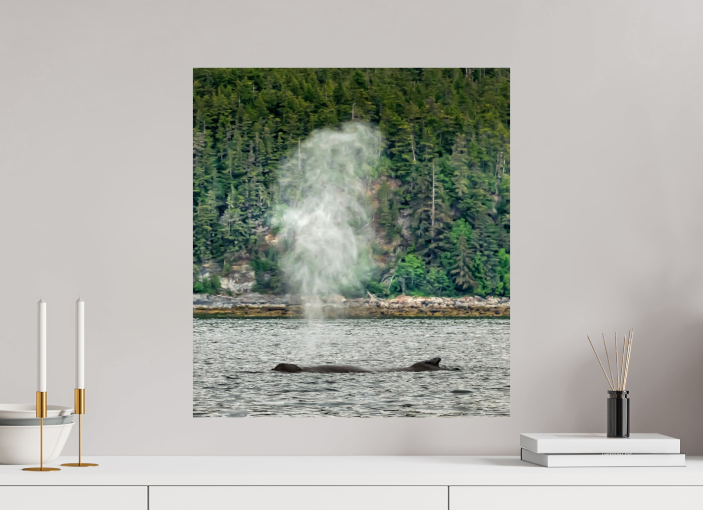 Experience the awe-inspiring moment captured in our stunning Whales Breath fine art print photograph. Taken in the breathtaking landscapes of Juneau, Alaska, this piece immortalizes the majestic power of a whale as it surfaces for air, showcasing nature's magnificent beauty.
