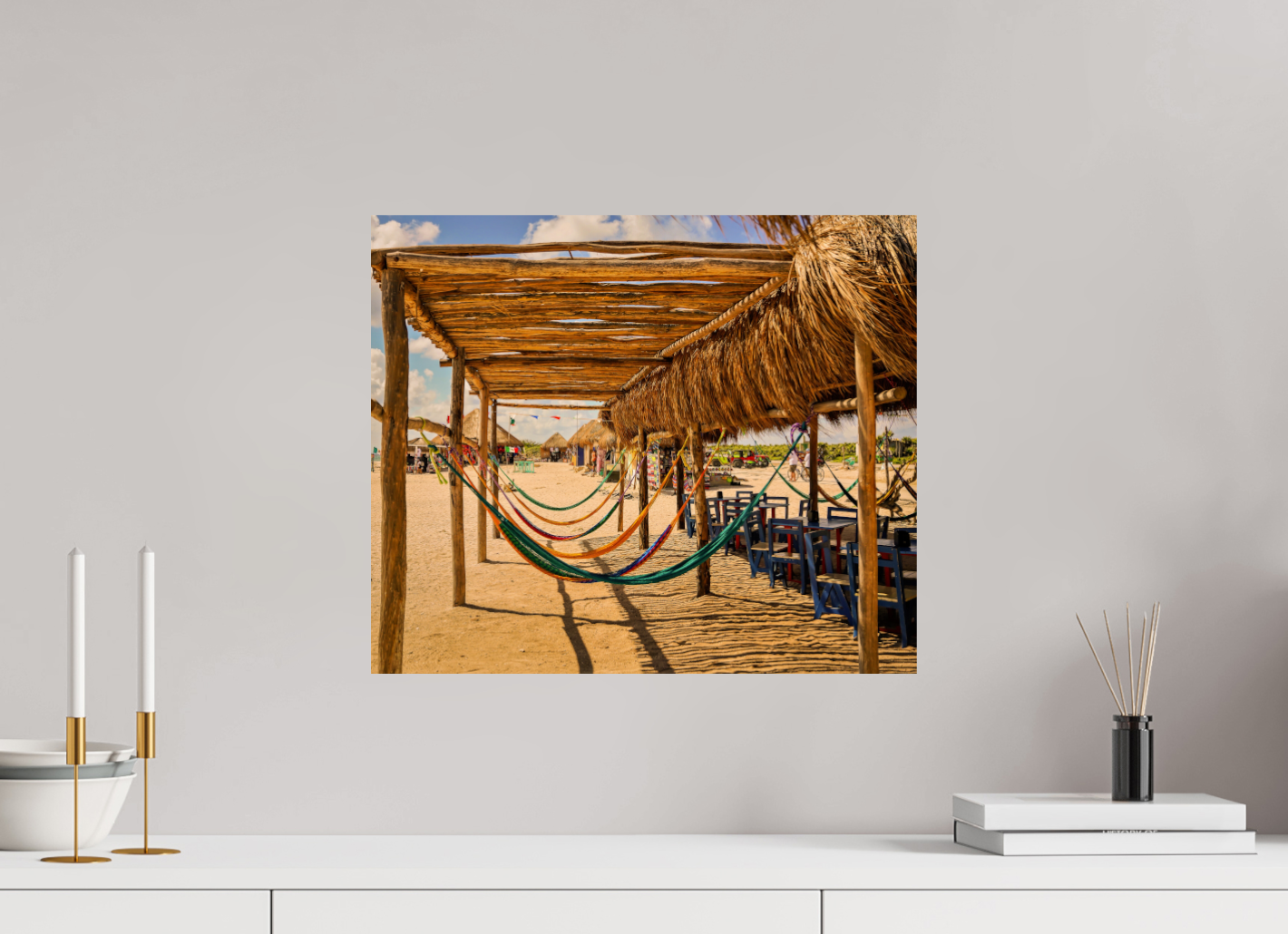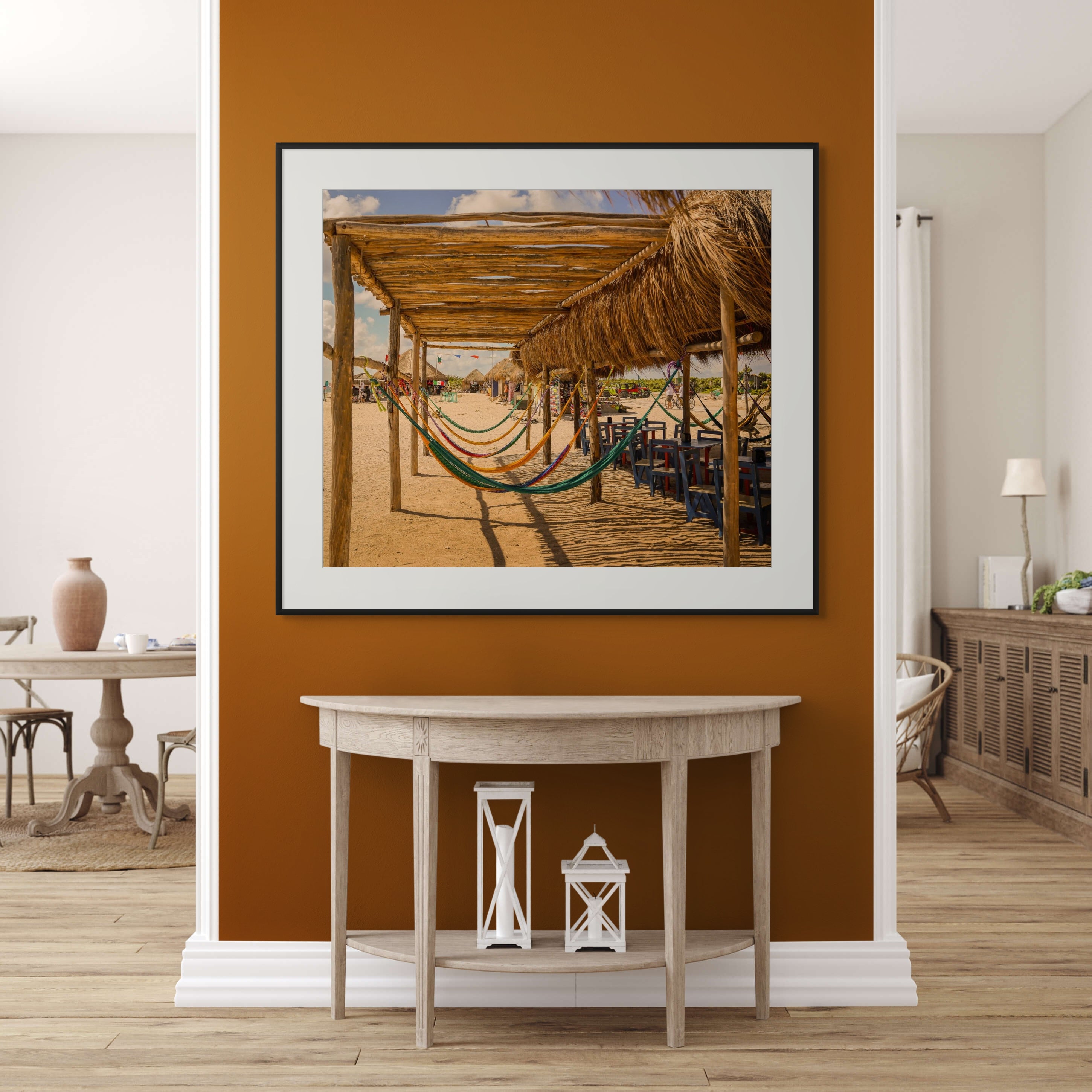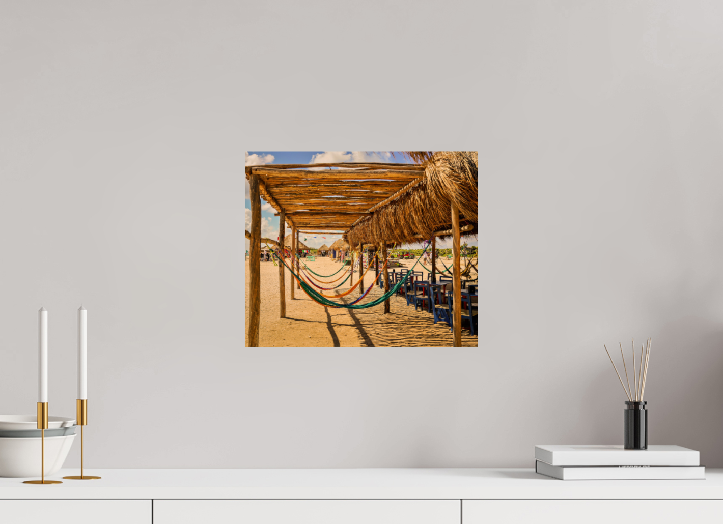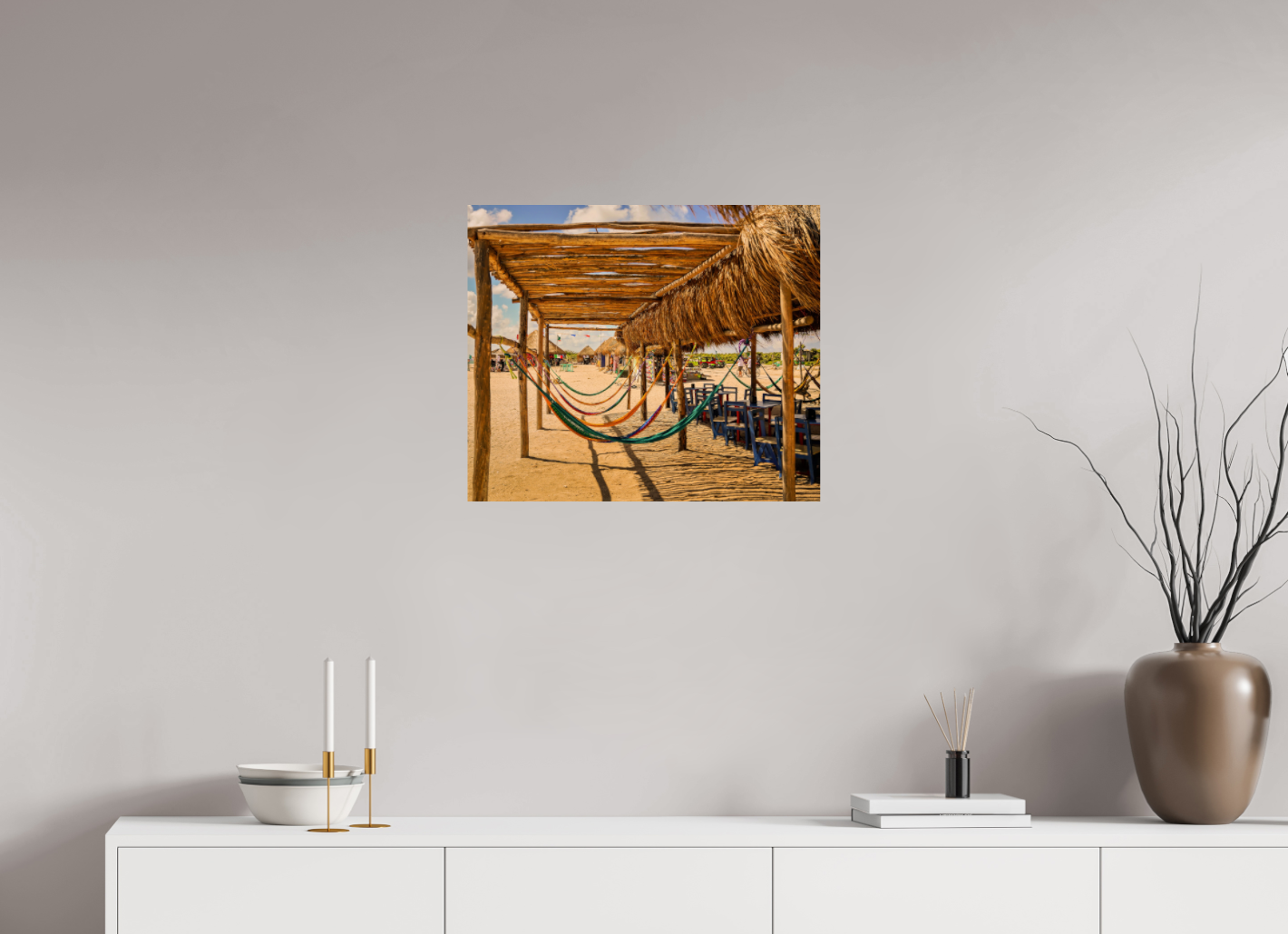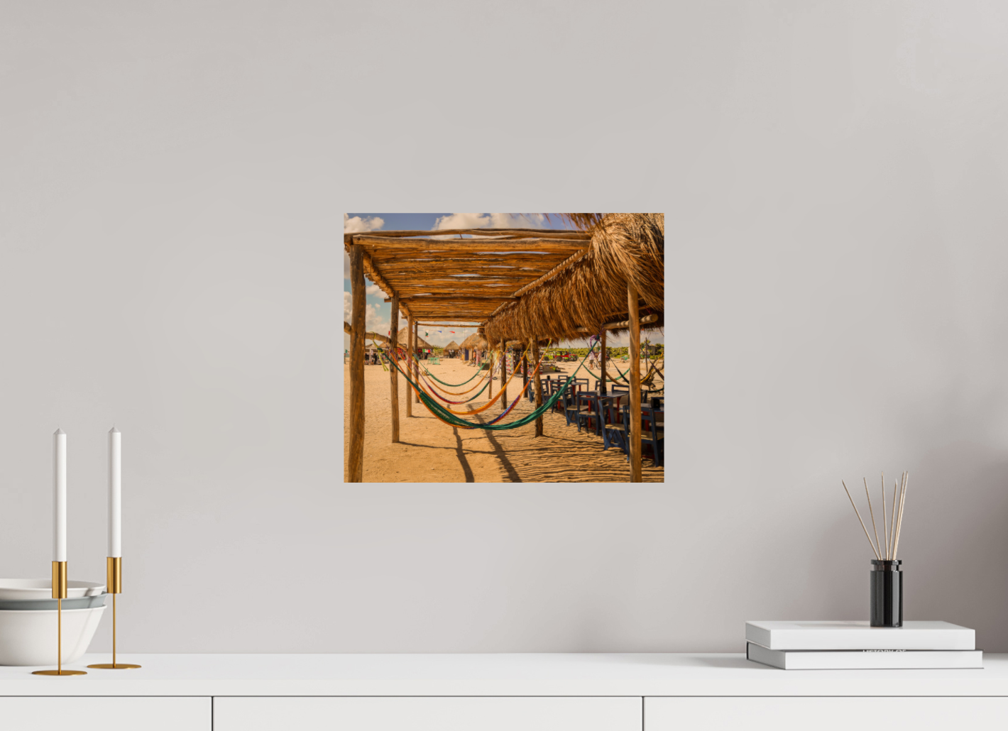 Hang this stunning artwork in your home, office, or beach house to evoke the relaxed vibe of hammocks on the beach every day. This print makes a perfect gift for travel enthusiasts or anyone who cherishes coastal escapes.