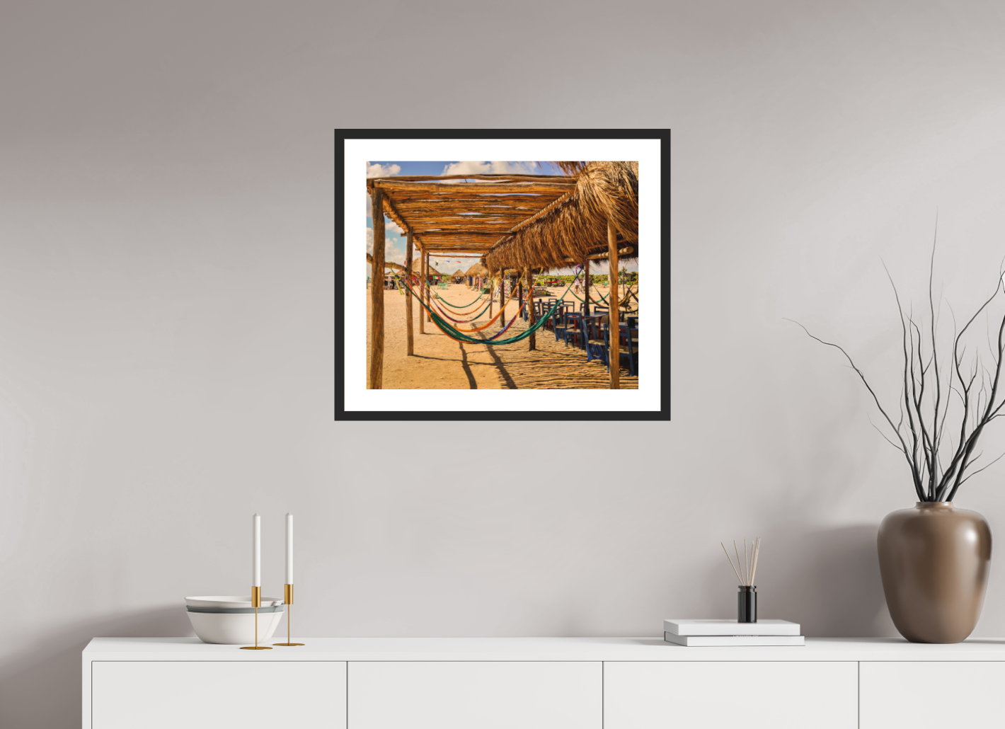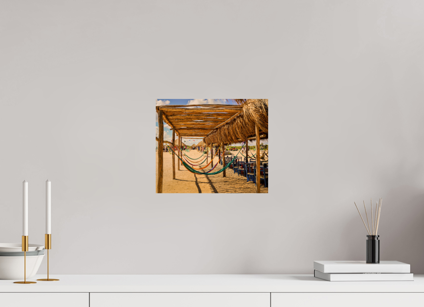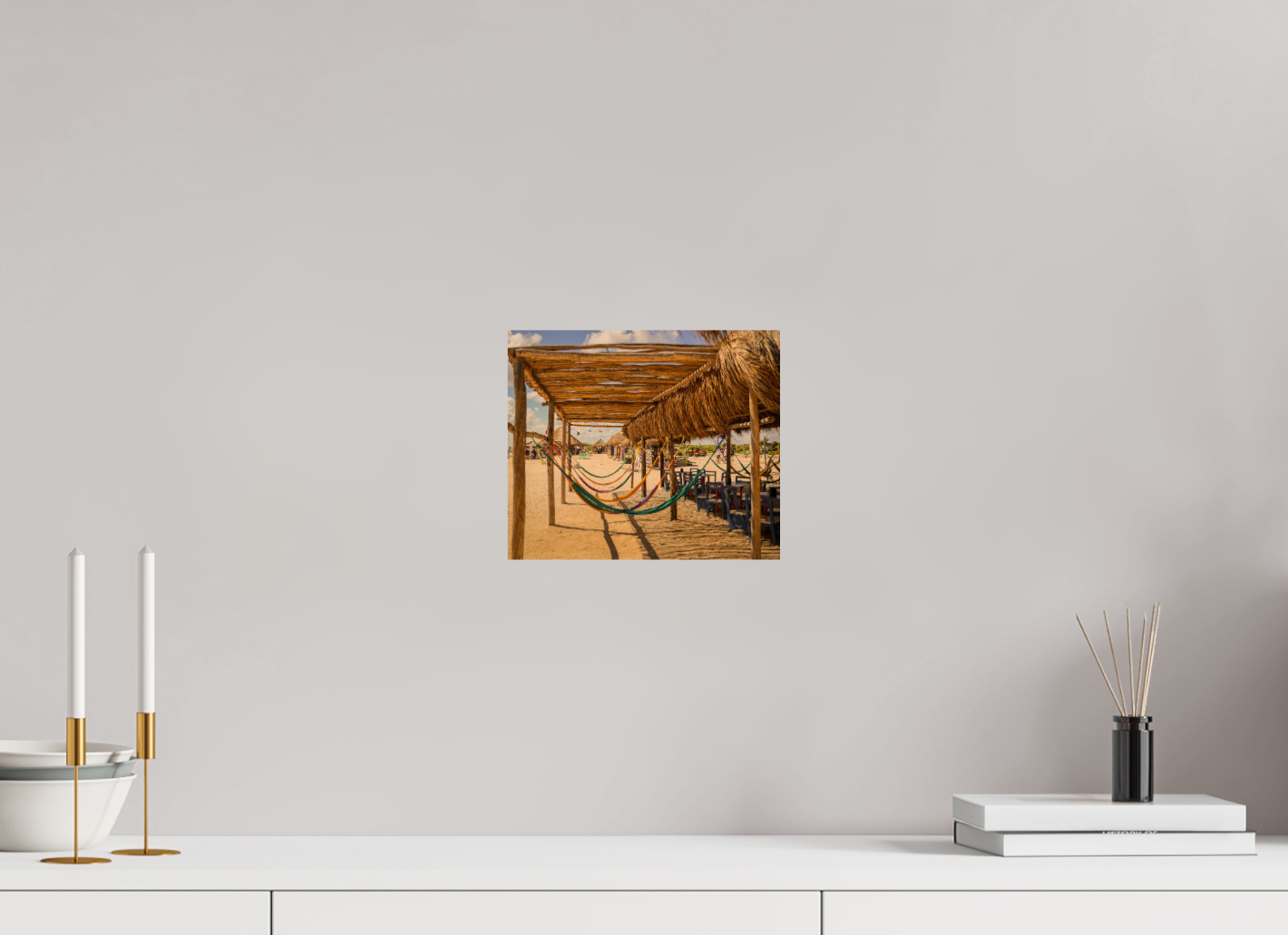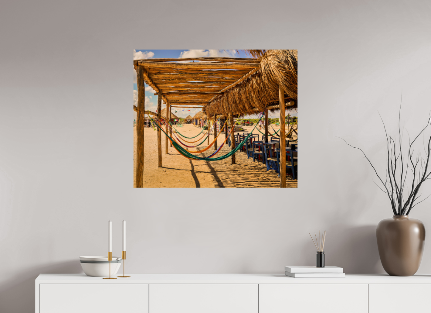 Hang this stunning artwork in your home, office, or beach house to evoke the relaxed vibe of hammocks on the beach every day. This print makes a perfect gift for travel enthusiasts or anyone who cherishes coastal escapes.