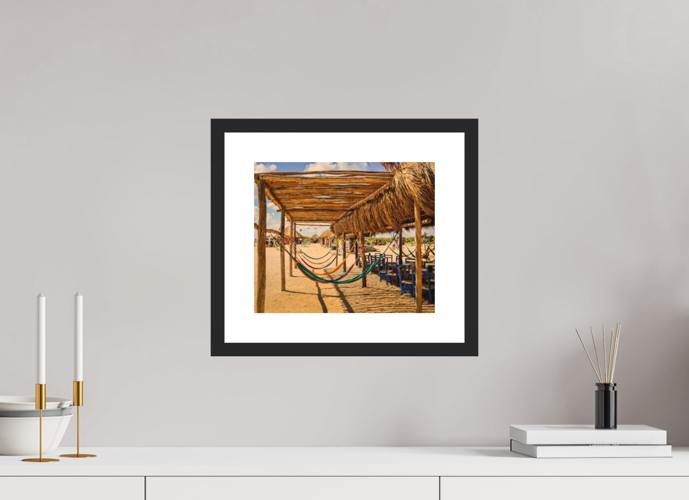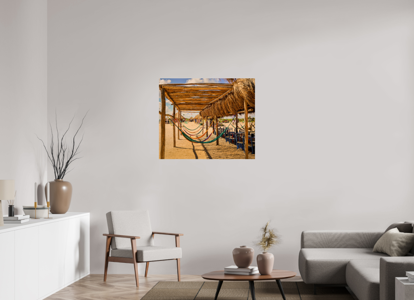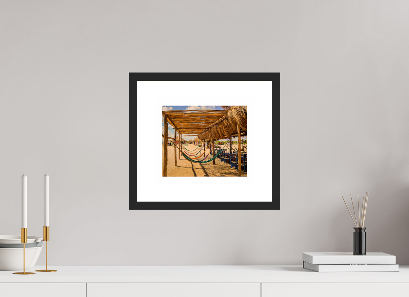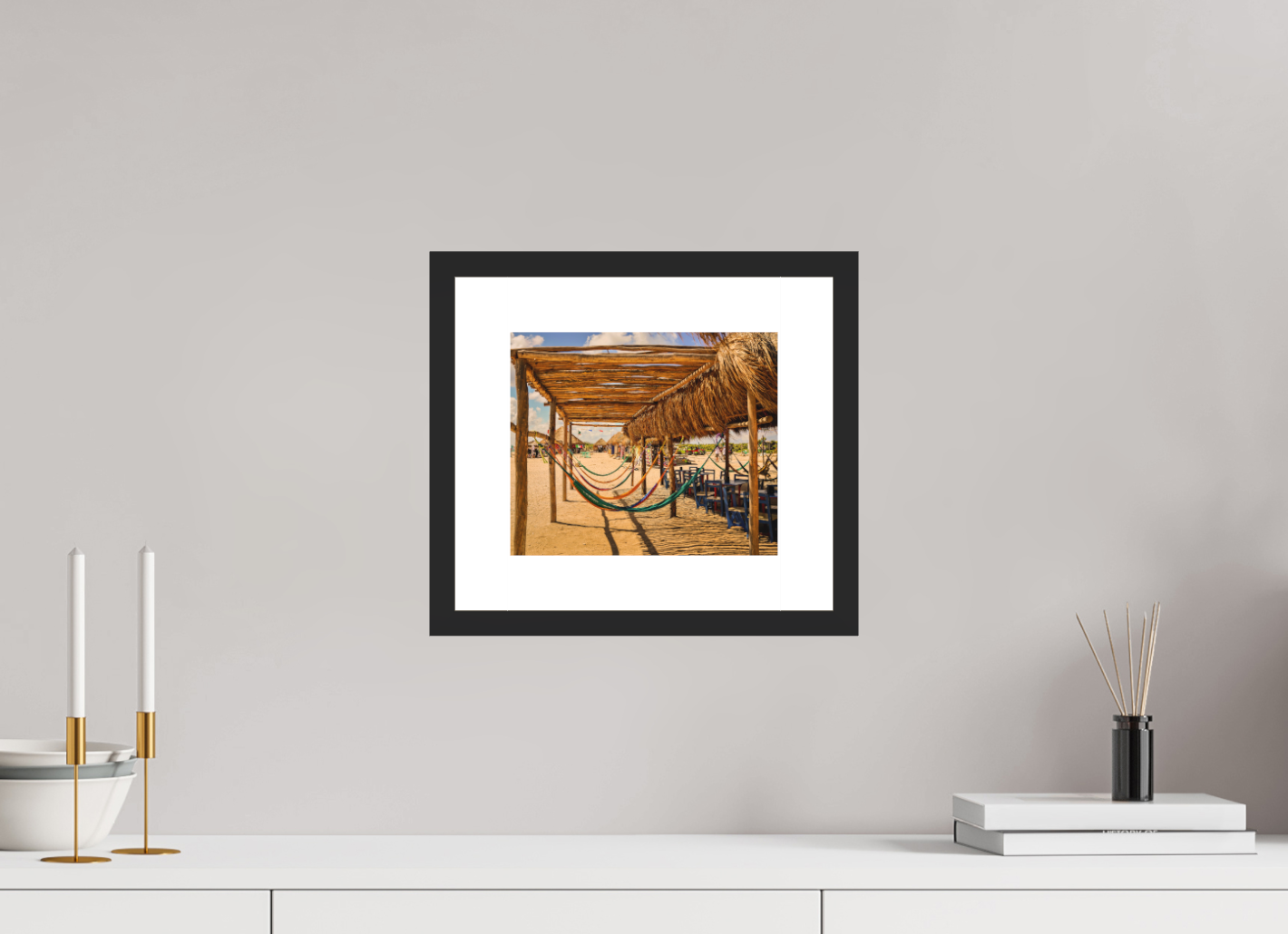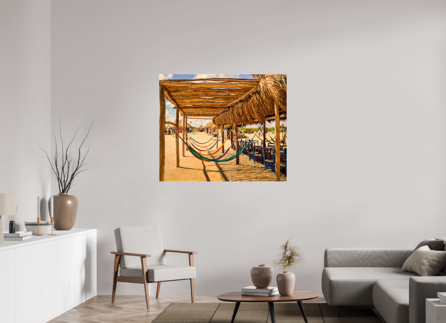 Hang this stunning artwork in your home, office, or beach house to evoke the relaxed vibe of hammocks on the beach every day. This print makes a perfect gift for travel enthusiasts or anyone who cherishes coastal escapes.