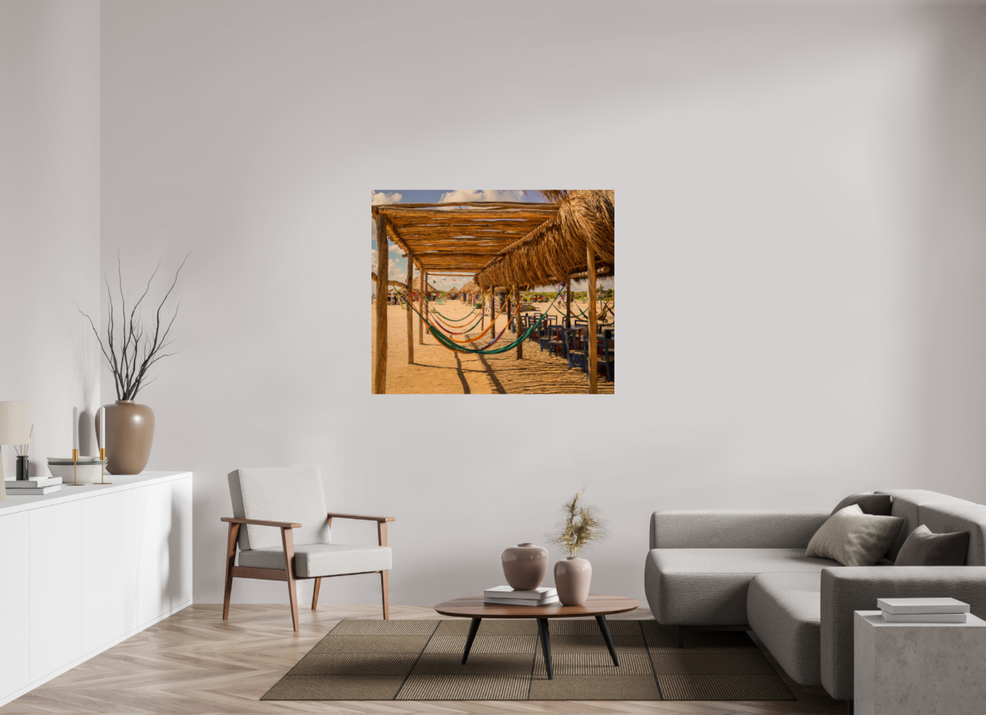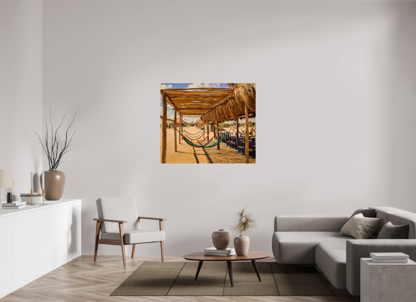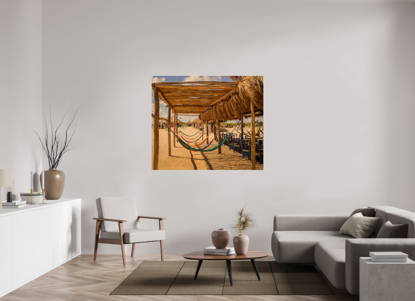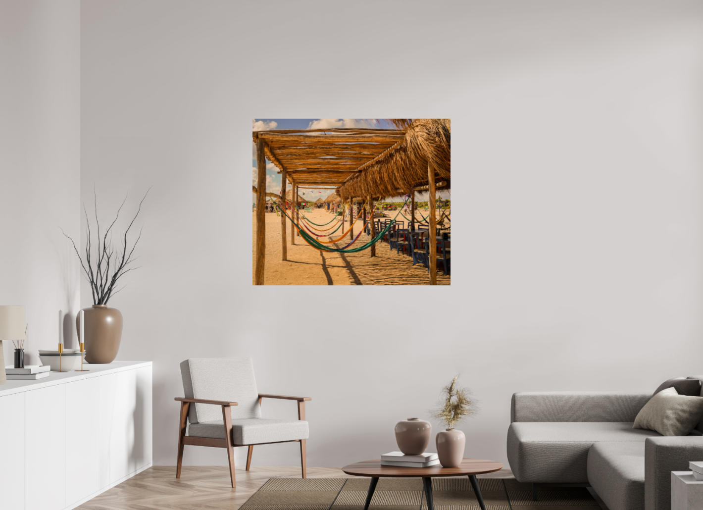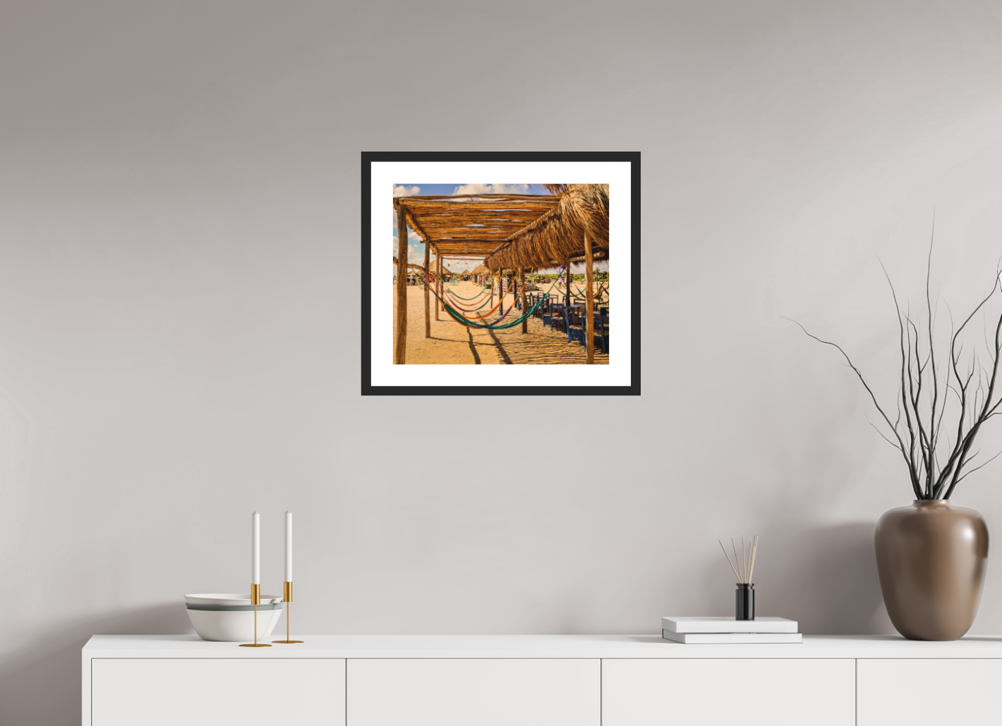 Hang this stunning artwork in your home, office, or beach house to evoke the relaxed vibe of hammocks on the beach every day. This print makes a perfect gift for travel enthusiasts or anyone who cherishes coastal escapes.