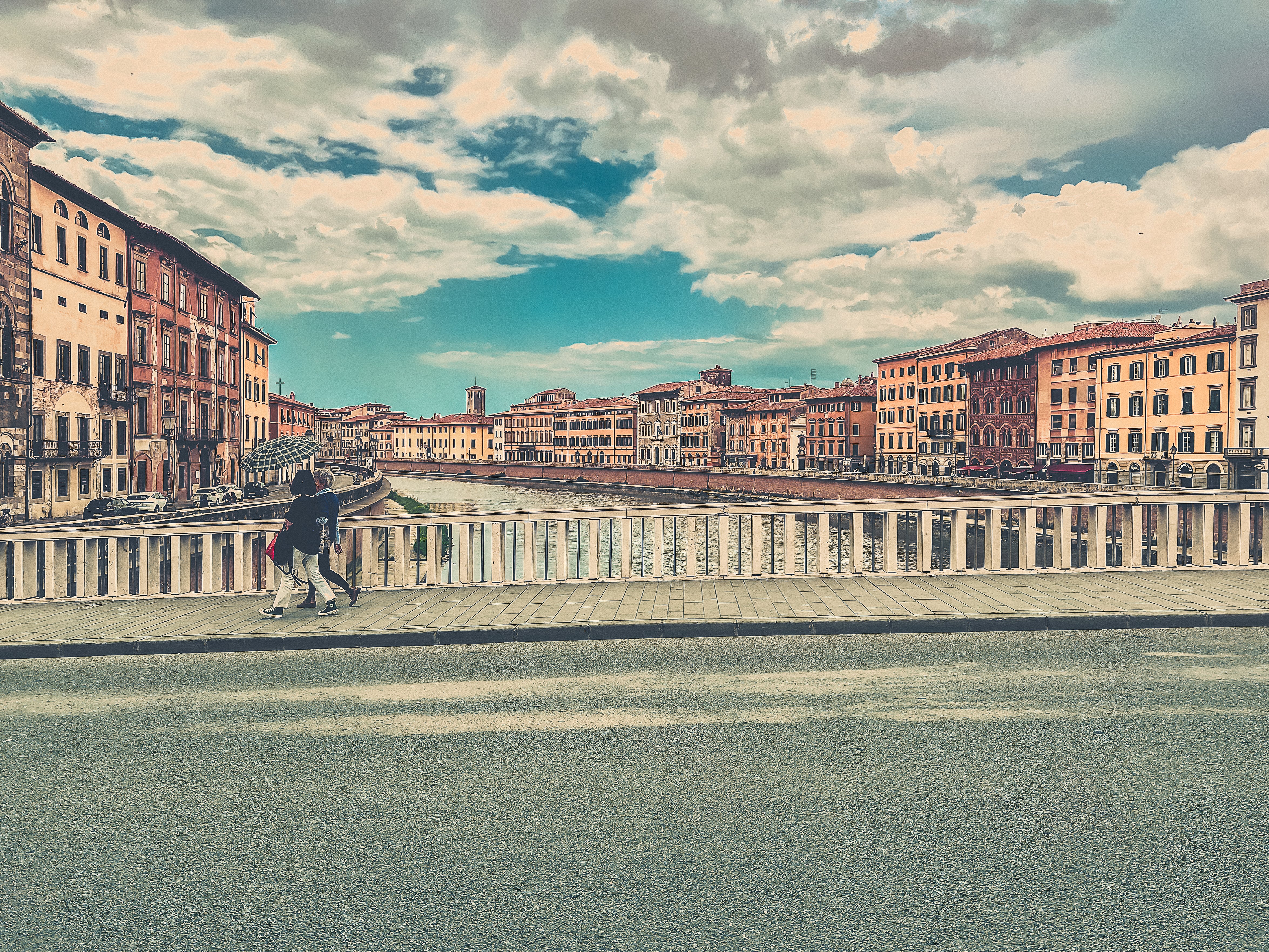 Experience the enchanting beauty of Italy with our stunning fine art print, Canal in Pisa. This captivating piece features a heartwarming scene of two friends sharing an umbrella as they stroll across a picturesque bridge, beautifully encapsulating the charm and romance of Pisa.