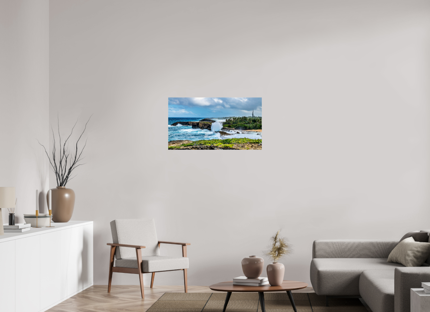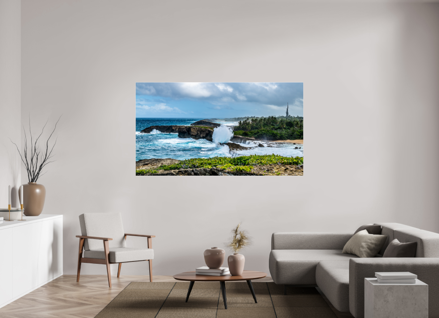This exquisite piece of photography not only serves as a visual delight but also brings the essence of the Caribbean right into your home. Here are some remarkable features of the Crashing Puerto Rico Coastline print: