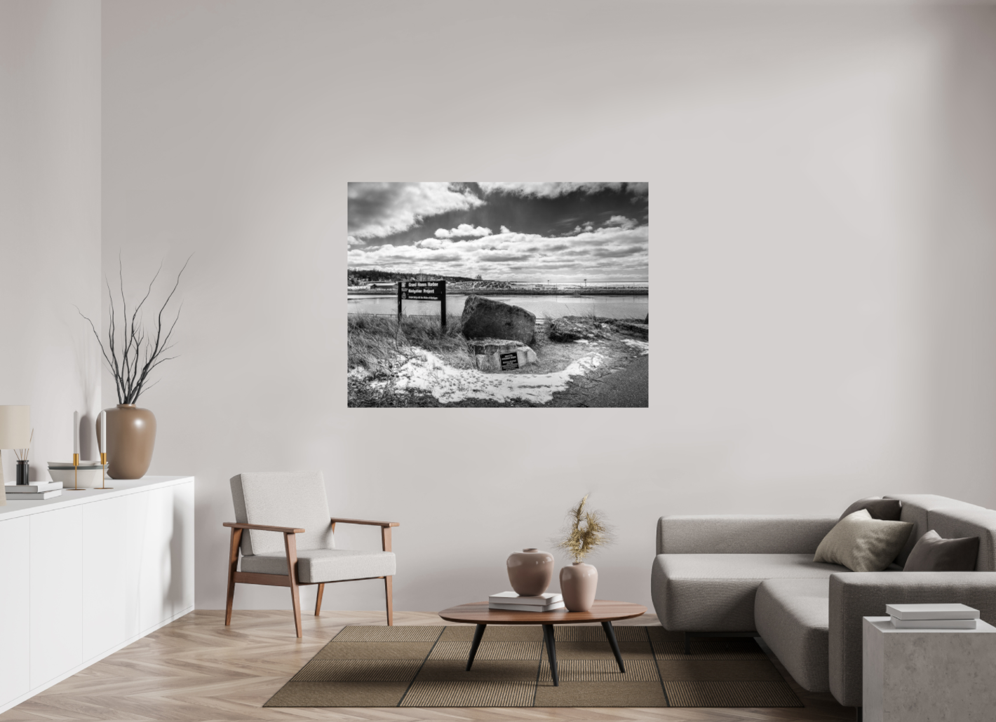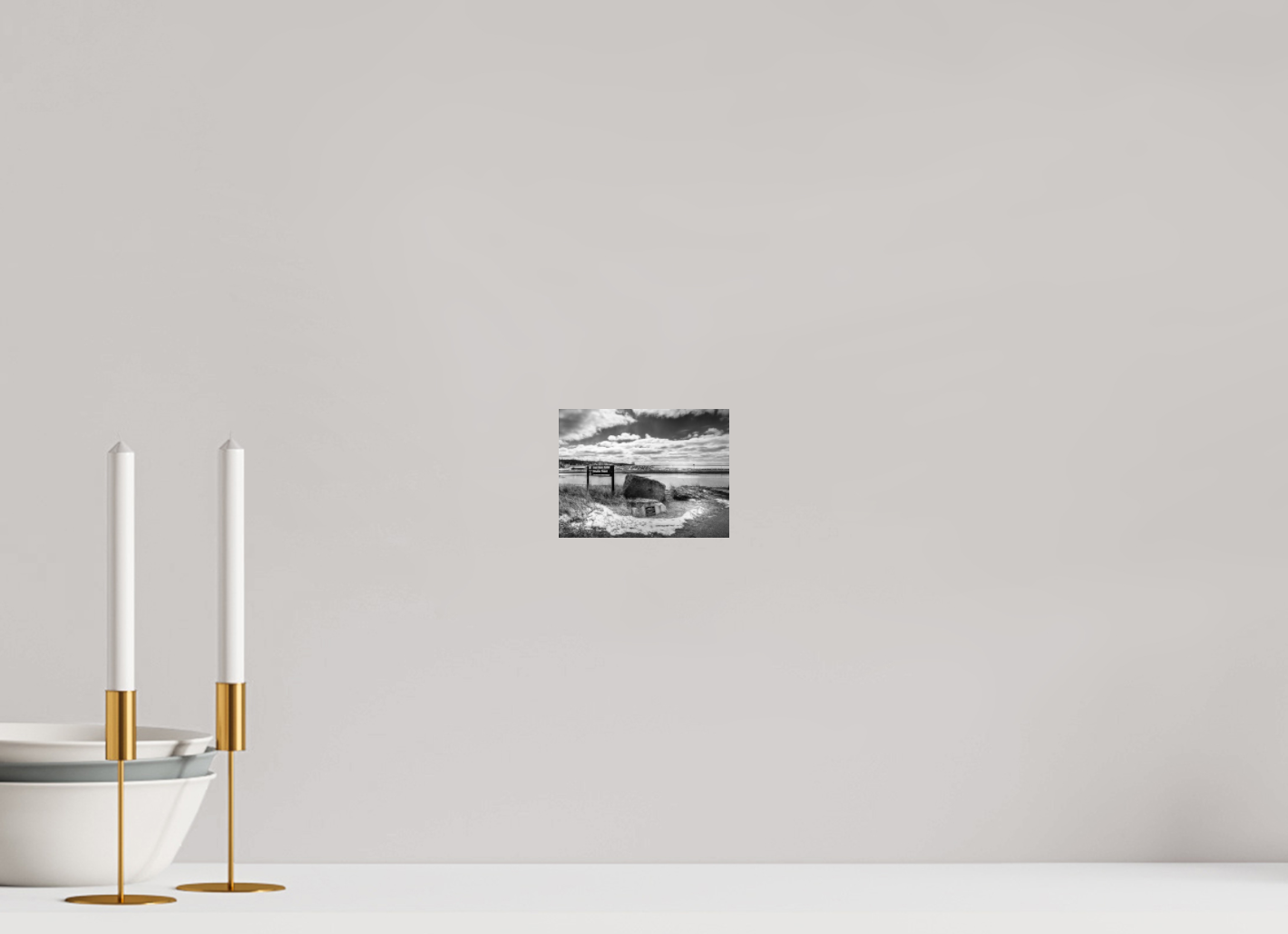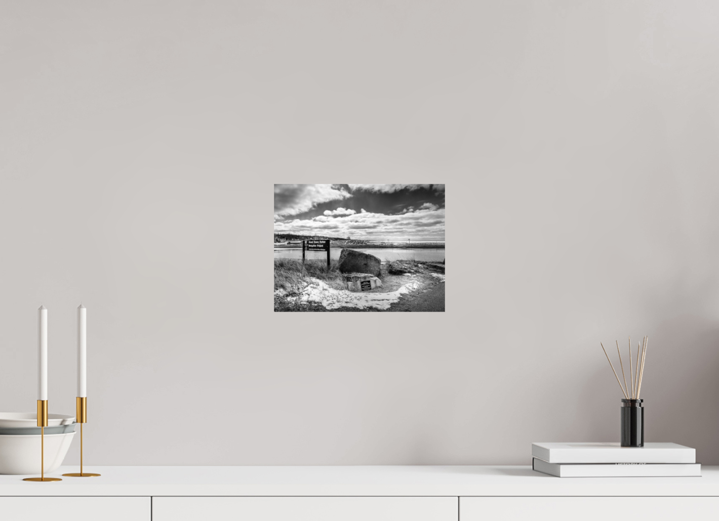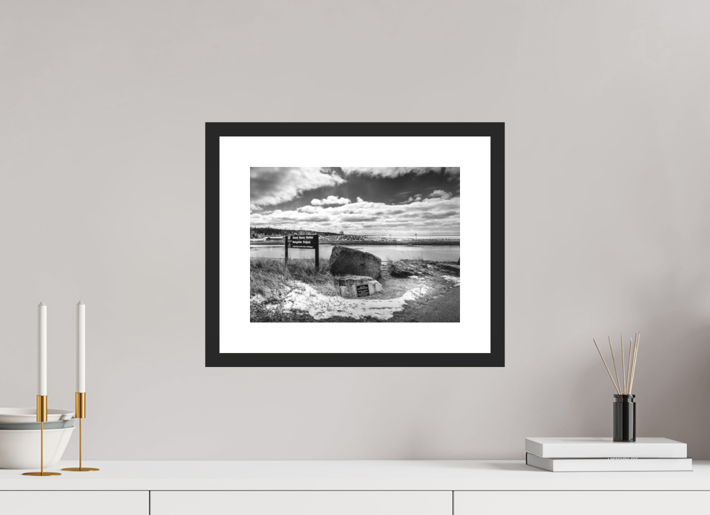 The dramatic clouds overhead, the rippling water, and the textured landscape create a stunning contrast that brings a sense of timelessness and tranquility to any space. This piece is perfect for those who appreciate coastal landscapes, maritime history, and fine art photography.