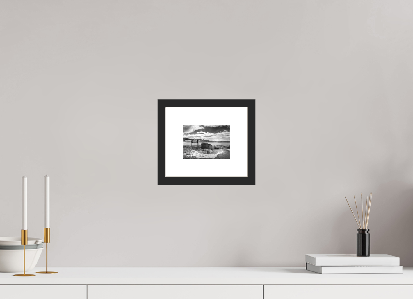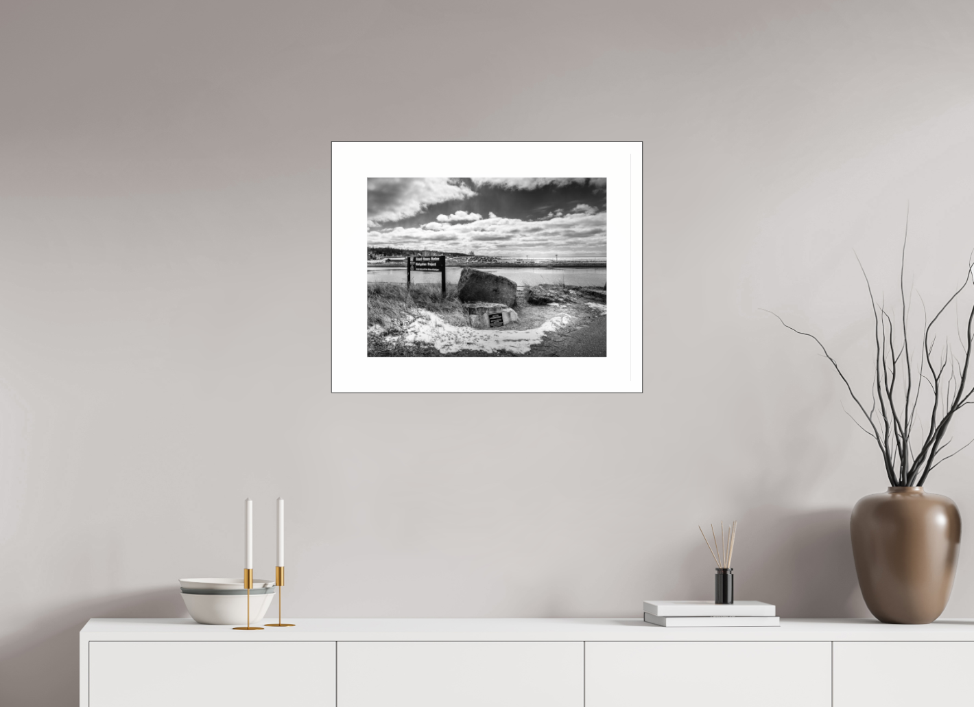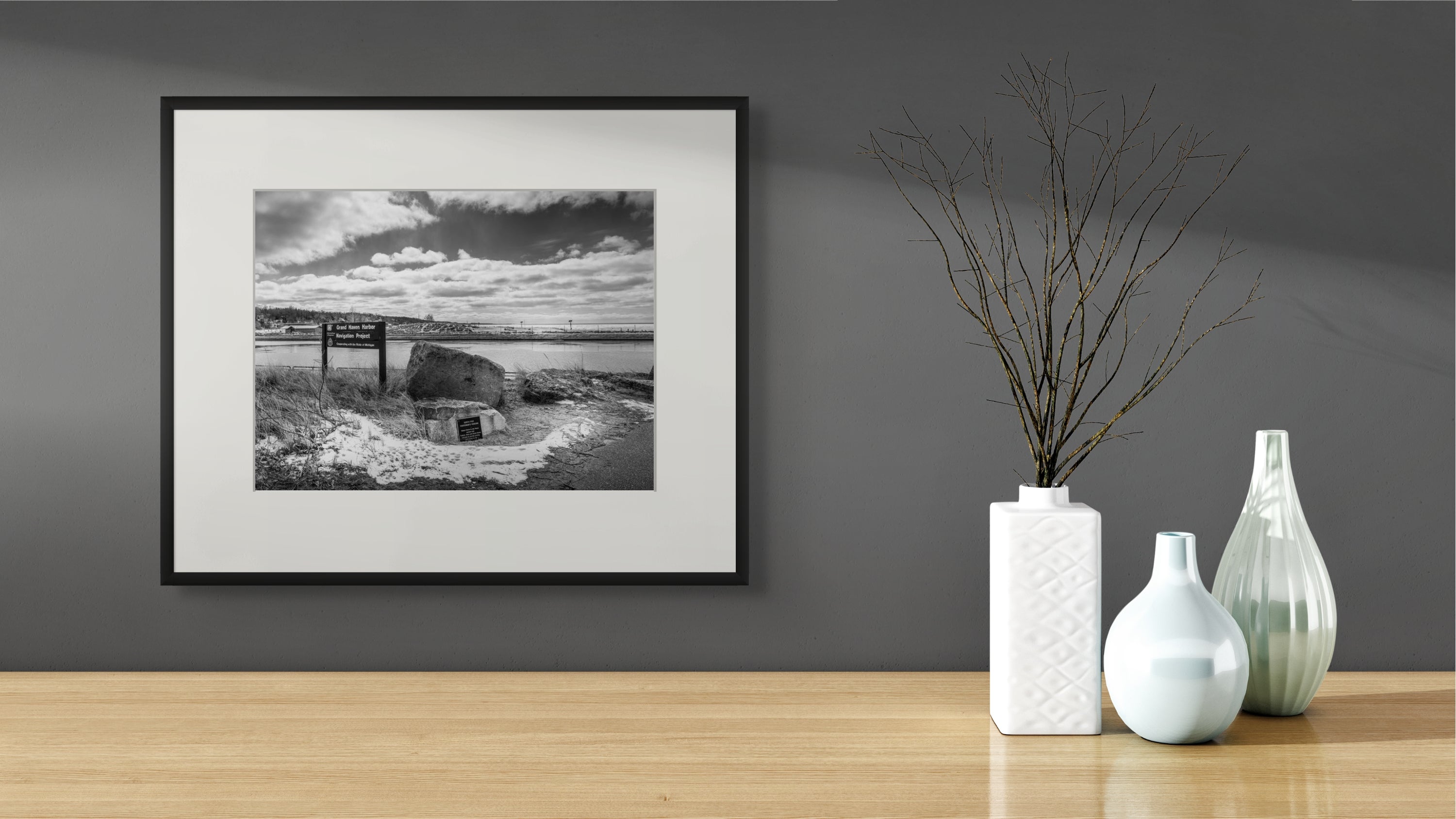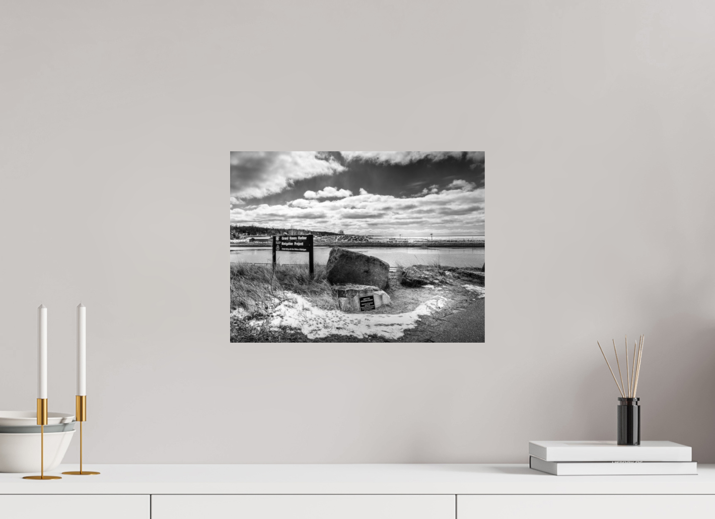 The dramatic clouds overhead, the rippling water, and the textured landscape create a stunning contrast that brings a sense of timelessness and tranquility to any space. This piece is perfect for those who appreciate coastal landscapes, maritime history, and fine art photography.