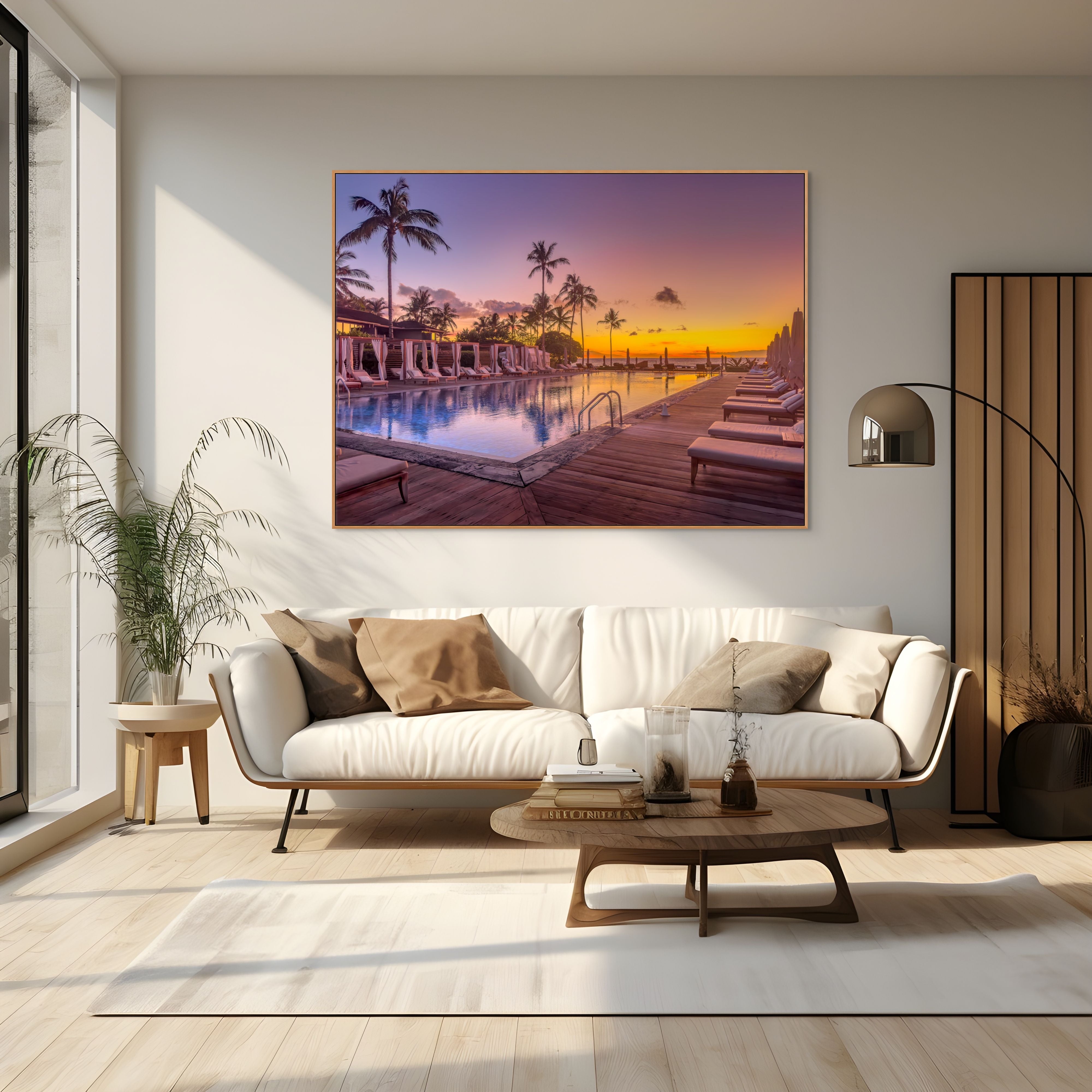 Discover a slice of paradise with The Pool at the Four Seasons - Hualalai, where you can indulge in the ultimate relaxation experience. This stunning fine art photograph captures the serene beauty of one of Hawaii's most luxurious pools, set against a backdrop of breathtaking sunsets and lush tropical landscapes. Let this artwork transport you to a tranquil oasis every time you gaze upon it.