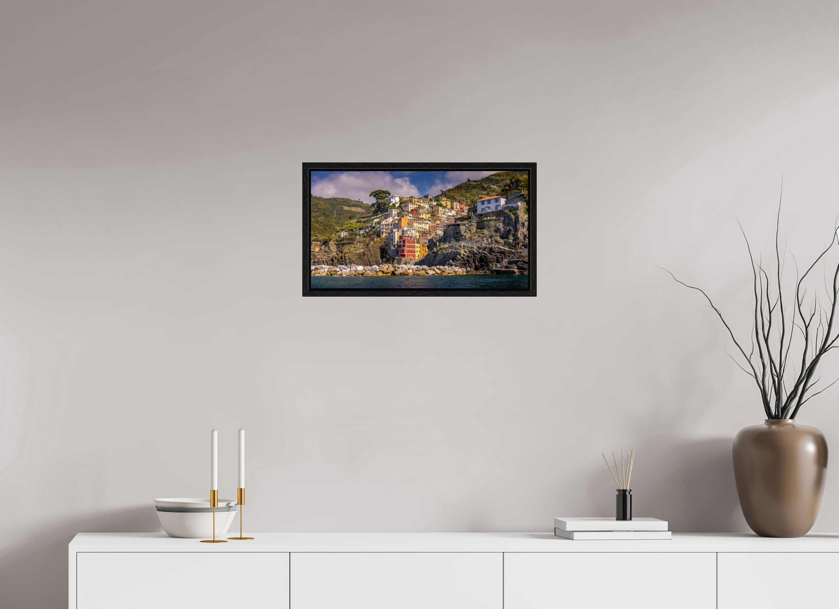 Immerse yourself in the breathtaking beauty of the Italian coastline with our stunning fine art print, Riomaggiore from the Sea. This exquisite photograph captures the vibrant charm of Riomaggiore, one of the picturesque villages of the Cinque Terre, viewed from the serenity of a ferry on the Mediterranean Sea.