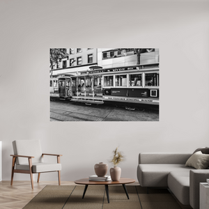 Stylish living room featuring "Serenity on the Water – Lake Tahoe in Black and White" artwork, capturing tranquil lakeside reflections. Stylish living room featuring