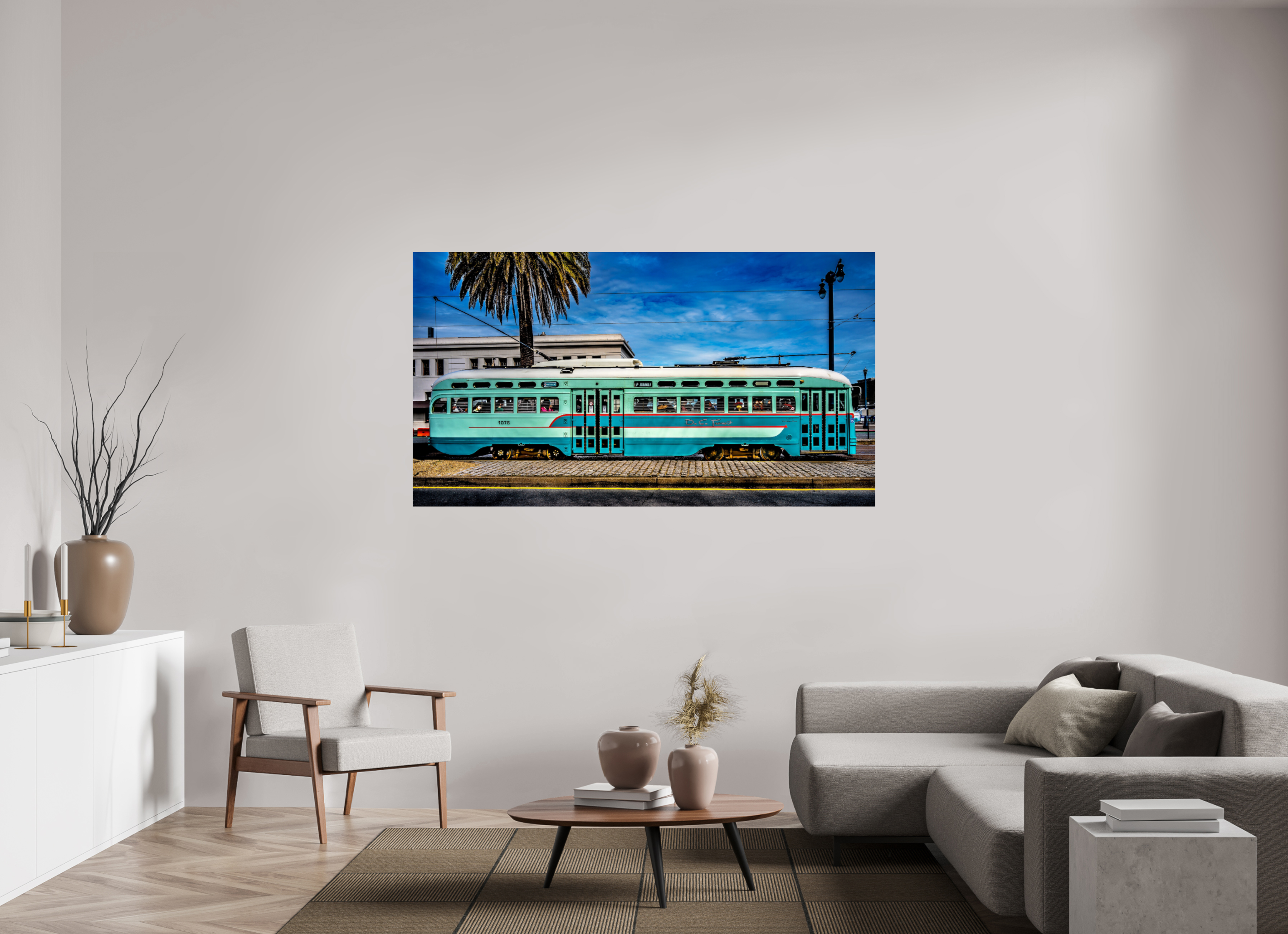 Bring the charm of the iconic Street Car in San Francisco into your living space with our stunning fine art print. This beautifully captured photograph showcases a vibrant blue streetcar, a symbol of the city's rich history and unique character.