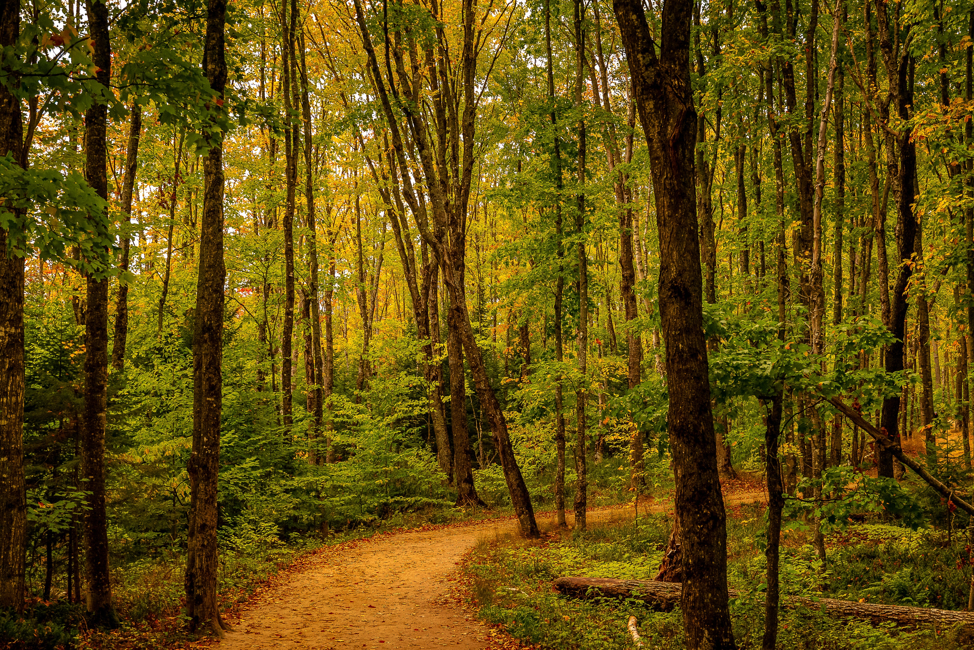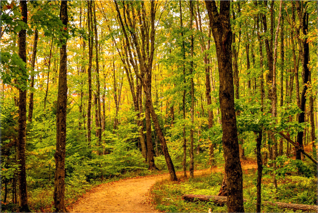 Immerse yourself in the serene beauty of nature with our stunning fine art print, Path to Least Resistance. This exquisite photography captures a picturesque fall scene from the Upper Peninsula, where a wide path gracefully winds through a vibrant forest, inviting you to explore.