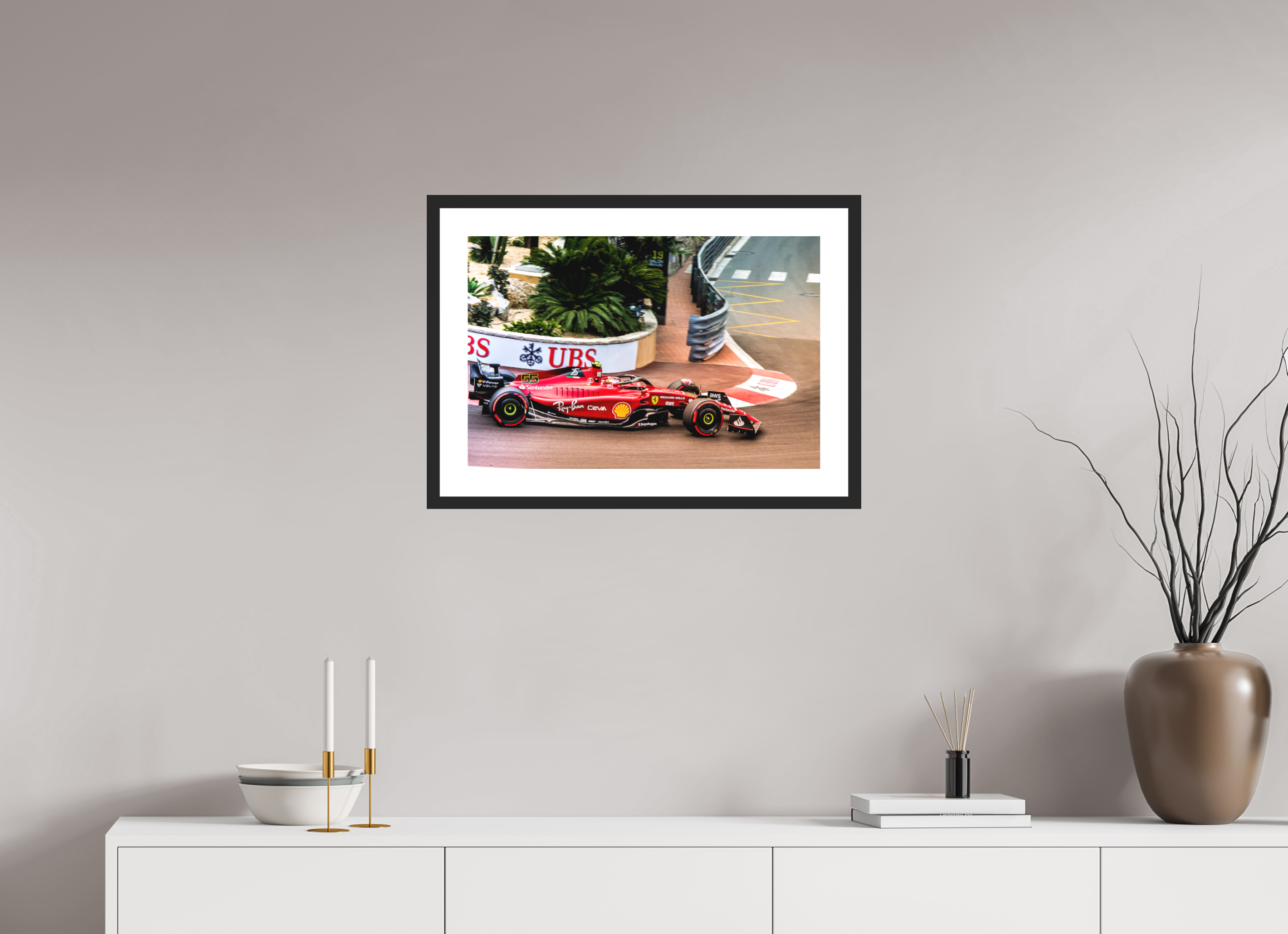 Immerse yourself in the exhilarating world of Formula 1 with our stunning fine art print, Sainz at the Hairpin. This captivating image captures Carlos Sainz expertly navigating the iconic hairpin at Monaco during the intense practice sessions of the 2022 Monaco GP. Each detail of the Ferrari F1 car is beautifully highlighted, showcasing the precision and thrill of high-speed racing.