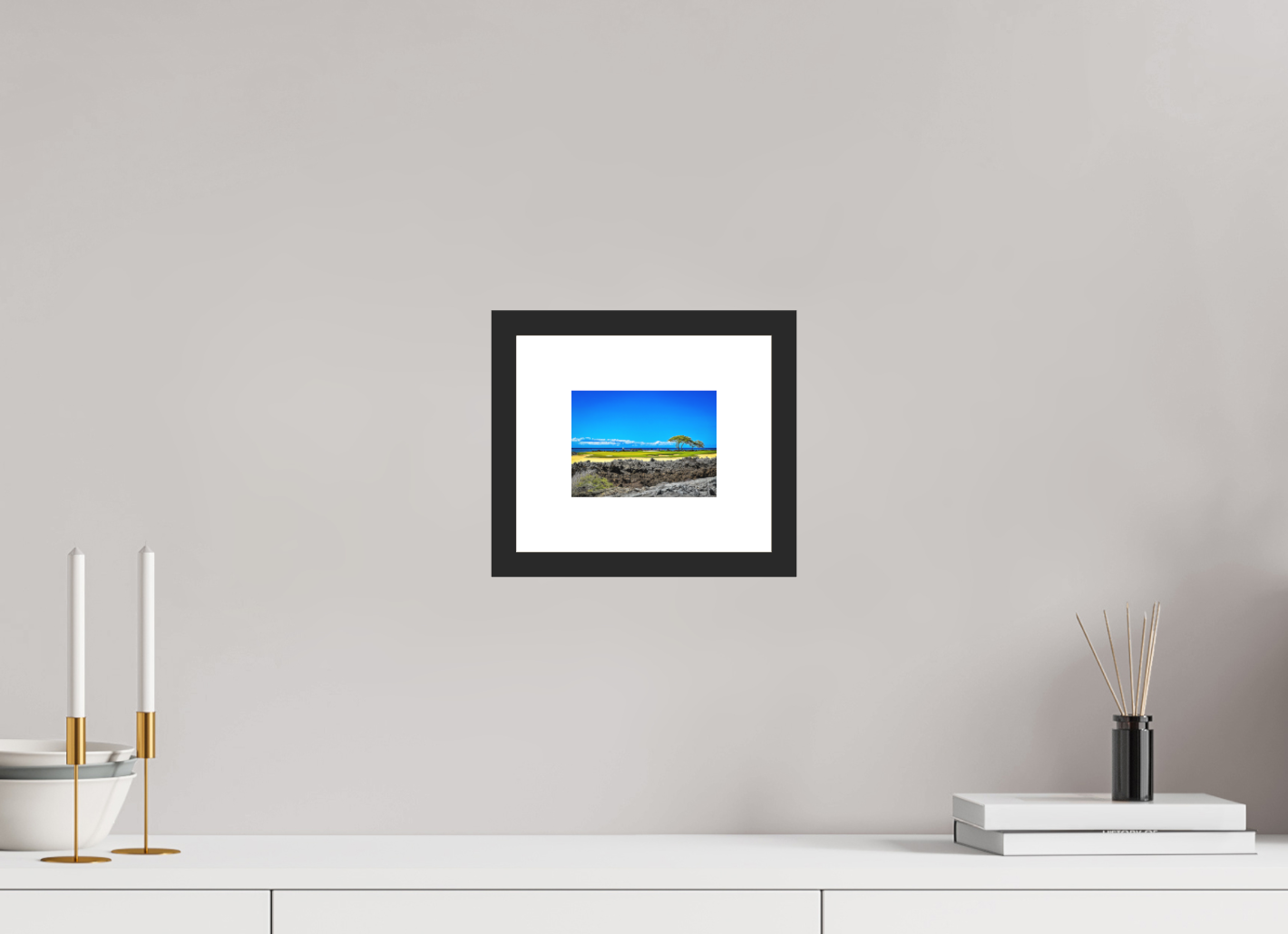 Timeless and elegant. This option pairs a natural wood or black/white frame with a 2″ archival mat for a museum-style display.