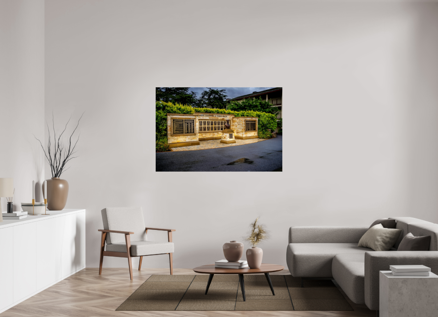 Discover The Monument of Champions, a stunning fine art print that pays tribute to the legendary golfers who conquered the iconic Pebble Beach during the PGA major championships. This exquisite photograph captures the essence of triumph and the spirit of competition, making it a must-have for any golf enthusiast or collector.