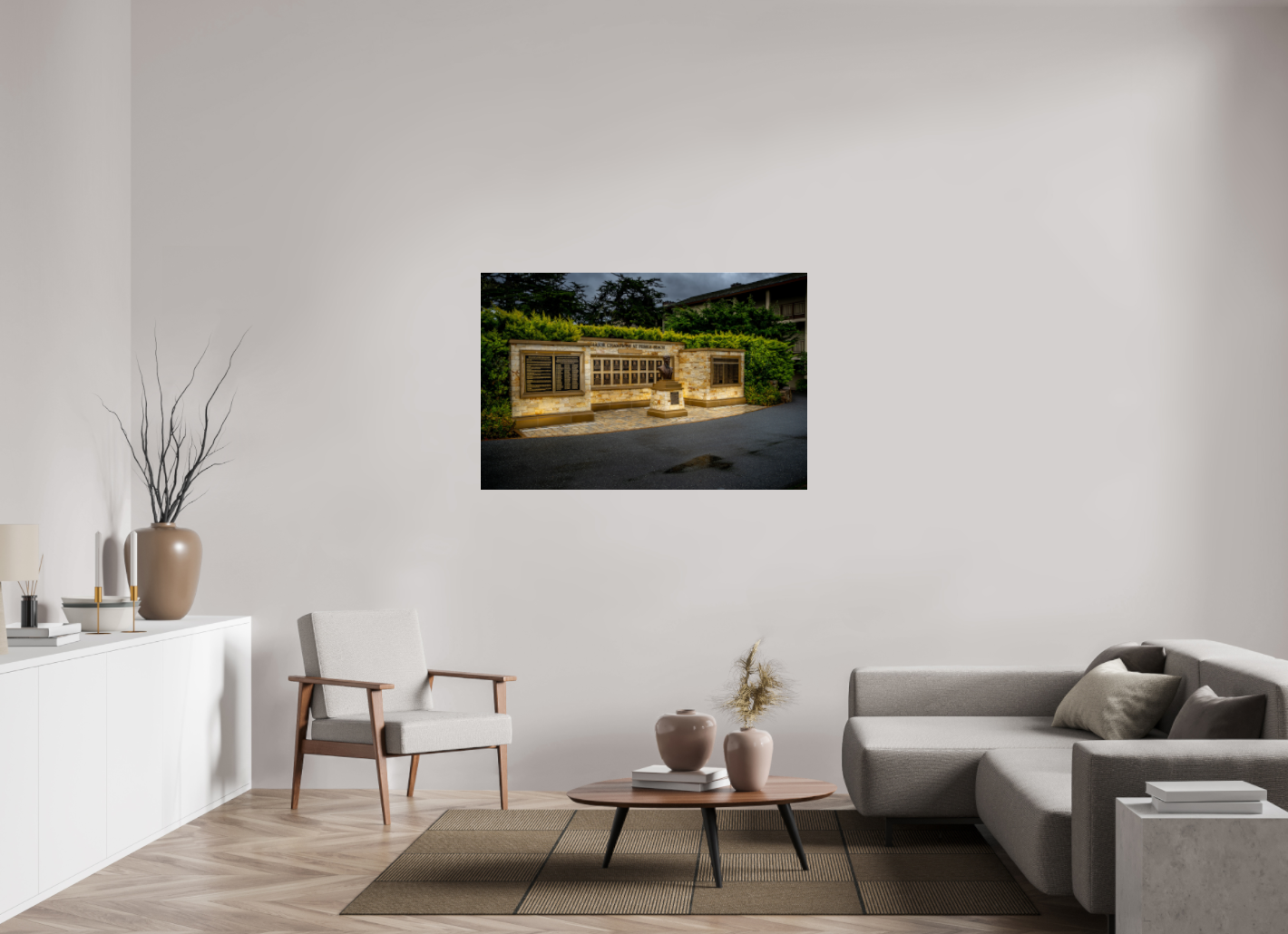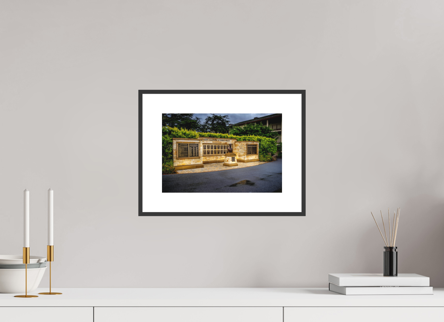 A modern, borderless finish. Mounted on an aluminum composite panel with a hidden back frame for a clean, floating wall appearance.
