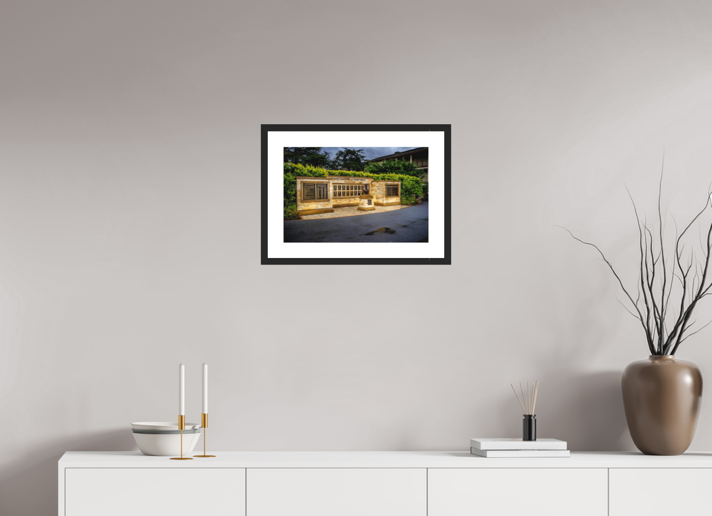 A slim, modern frame that creates the illusion of your print hovering inside its border. Ideal for a sleek, refined look.