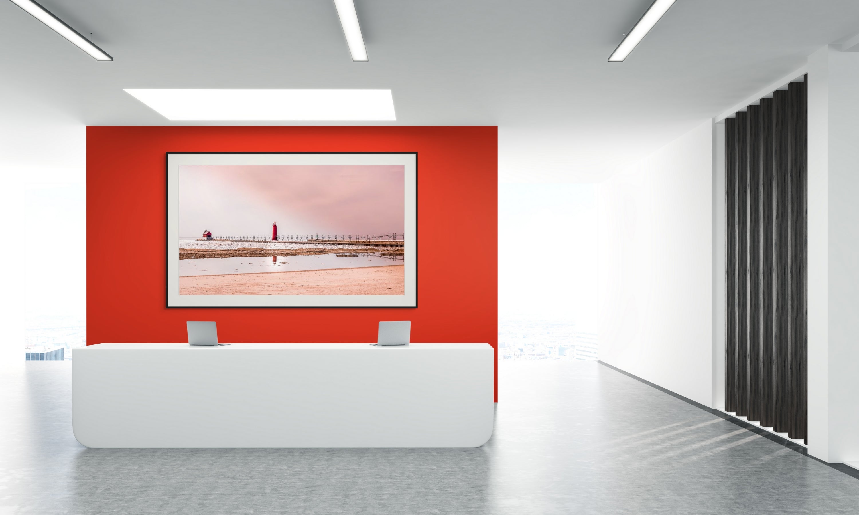 A modern, borderless finish. Mounted on an aluminum composite panel with a hidden back frame for a clean, floating wall appearance.