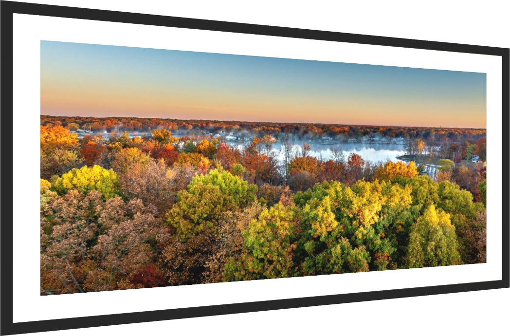 Investing in our aerial photography means bringing a piece of nature indoors. Each print is crafted with care, ensuring that every detail reflects the stunning beauty of Spring Lake in the fall. Embrace the season and let the serene imagery of Petty's Bayou elevate your home or office décor.