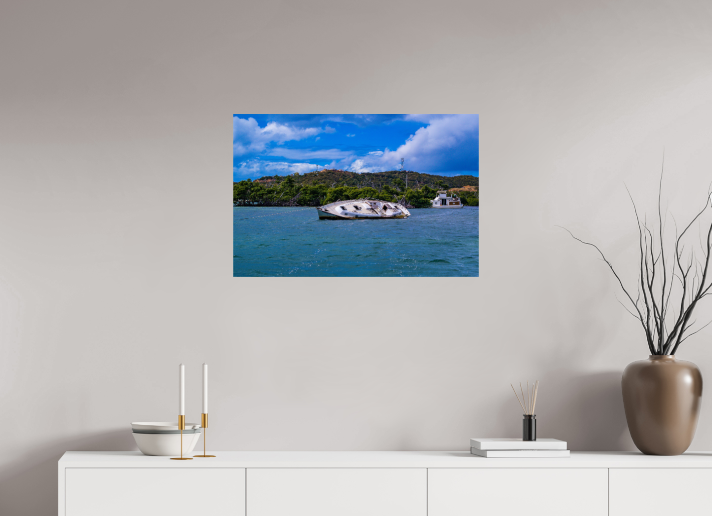 Immerse yourself in the breathtaking beauty of the Caribbean with our stunning fine art print, Shipwrecked in the Caribbean. This captivating photograph captures a shipwrecked sailboat, gracefully tilted on a serene moor near St. John, USVI. It evokes a sense of adventure and the mysteries of the sea, making it the perfect addition to any home or office decor.