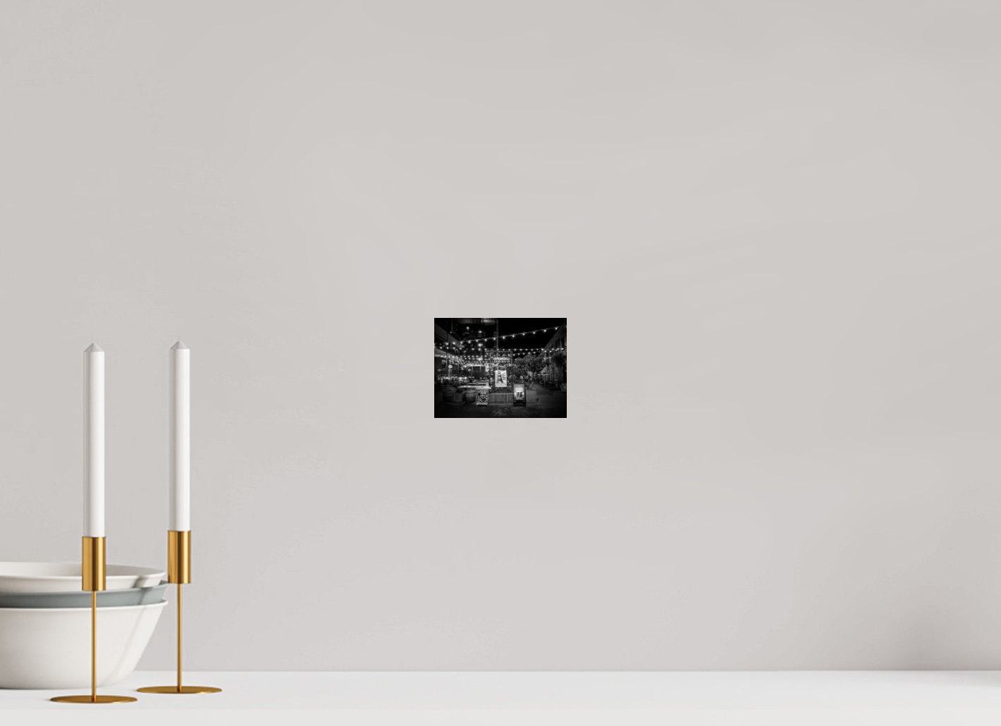 Experience the captivating essence of San Francisco Nights – Ghirardelli Square with this breathtaking black and white photograph. This stunning piece encapsulates the magical ambiance of Ghirardelli Square at night, where shimmering strings of bistro lights create a cozy, inviting atmosphere. The rustic brick courtyard, illuminated by these glowing lights, showcases the iconic San Francisco Brewing Co. sign, drawing the viewer’s eye into the heart of the scene.