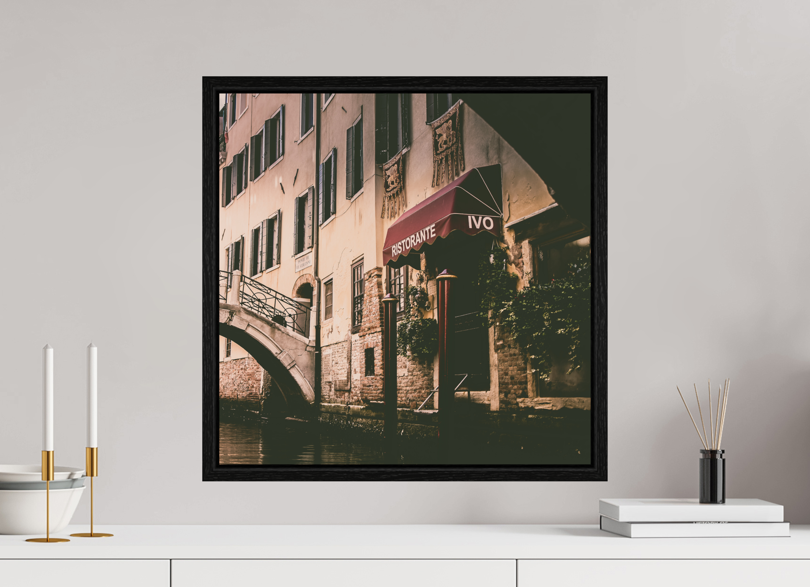 Capture the enchanting allure of Venice with our stunning fine art print, Ristorante, Venice. This exquisite photograph, taken from the serene waters of the canal, beautifully showcases the charming entrance of a renowned restaurant, inviting you to experience the magic of Italian cuisine.