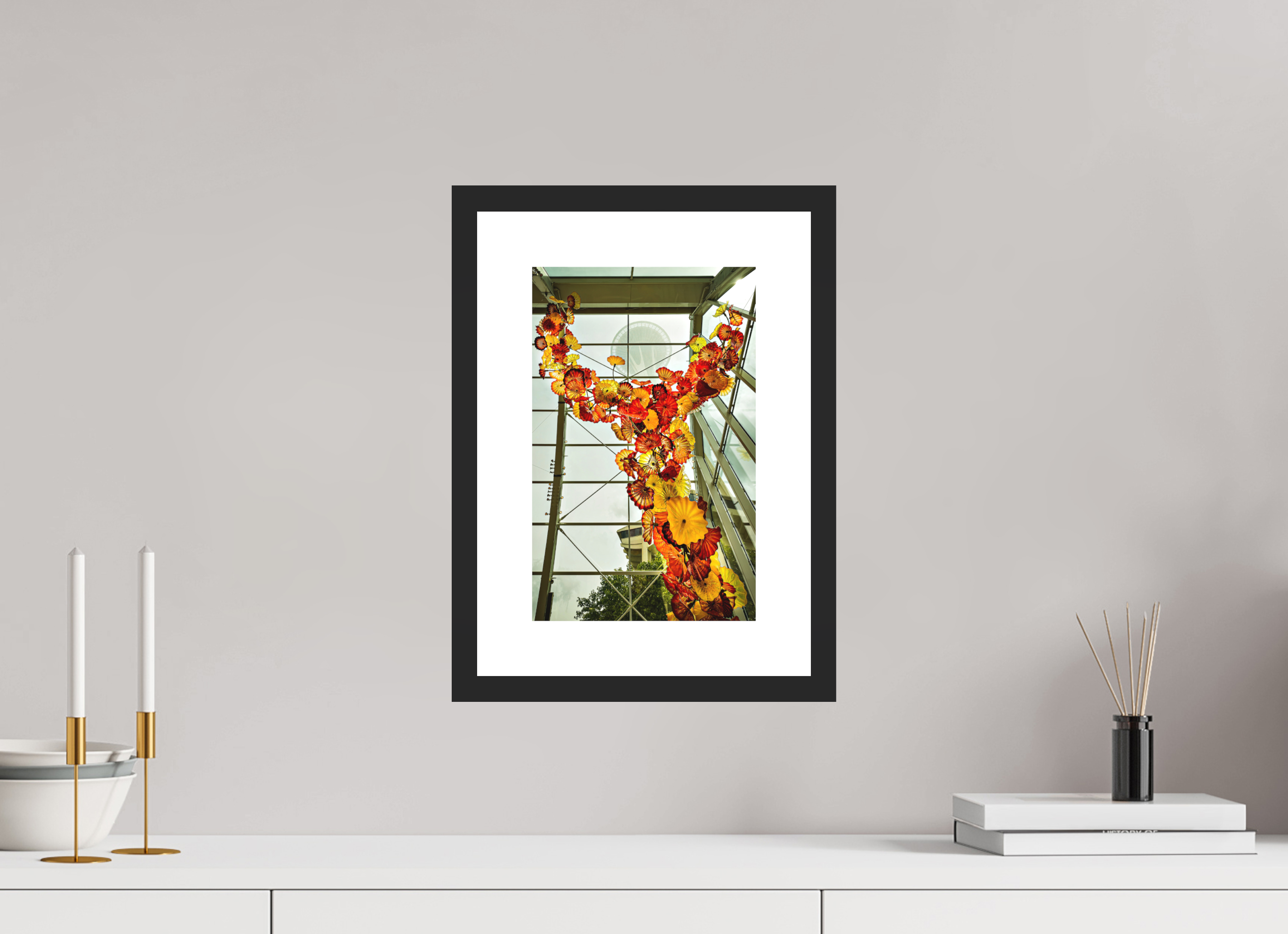 Experience the stunning artistry of Chihuly Glass with Space Needle, a breathtaking fine art print that captures the essence of Seattle's vibrant culture. This exquisite photograph was taken from within the renowned Chihuly Glass exhibit, showcasing a captivating display of intricate glass sculptures framed by the iconic Space Needle.