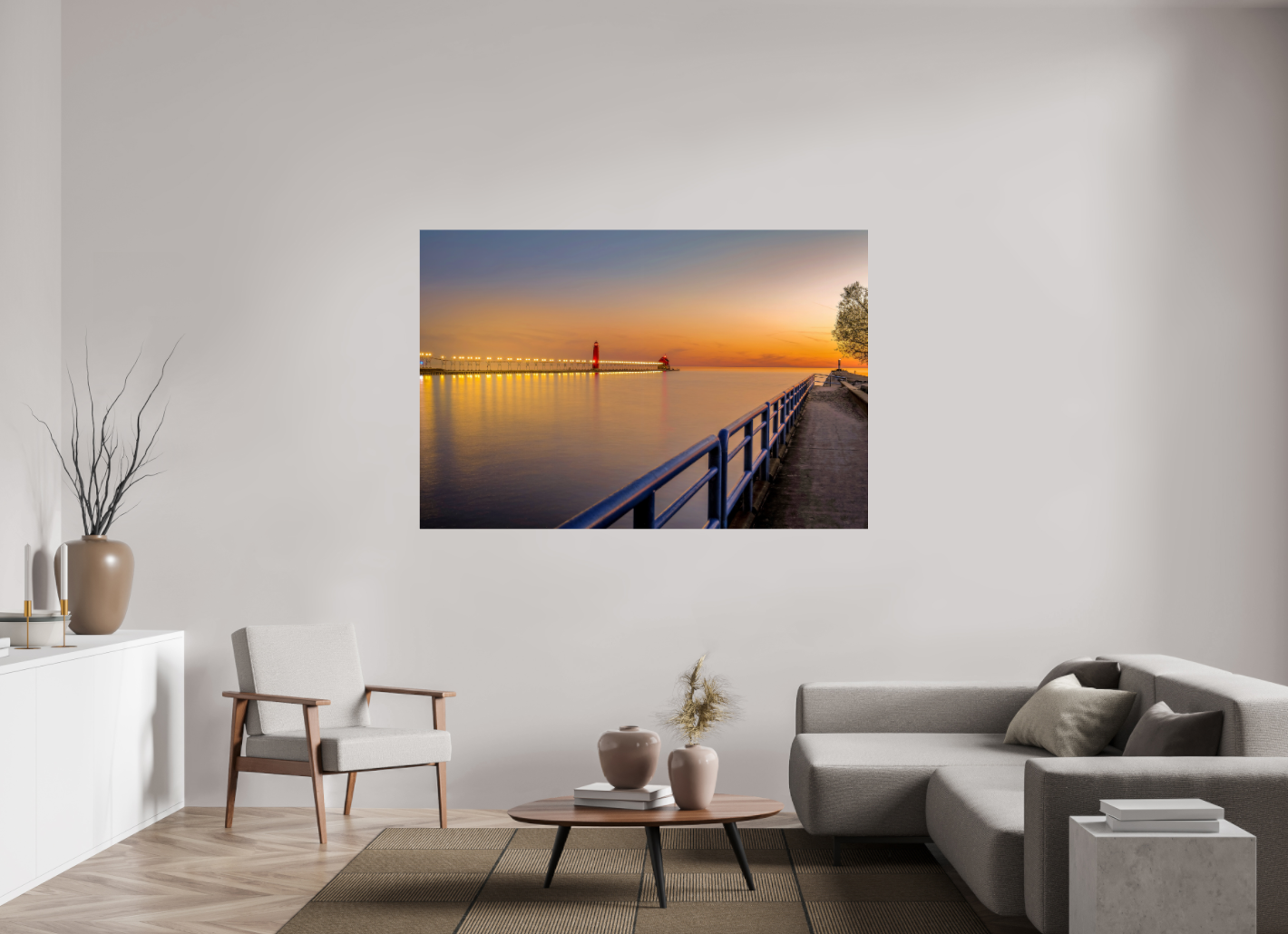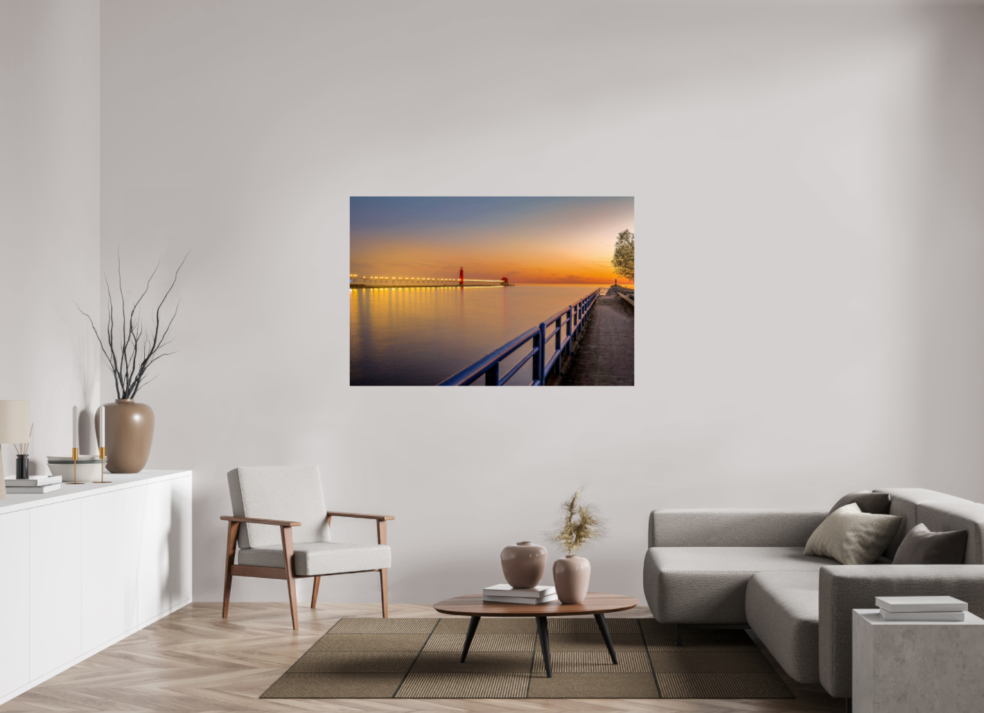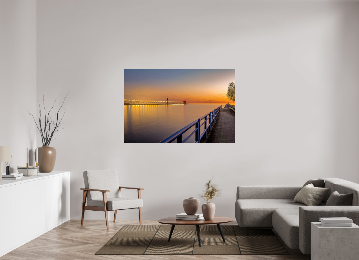 Bring the magic of Grand Haven's sunsets into your home with this exquisite piece of art that truly captures the essence of tranquility.