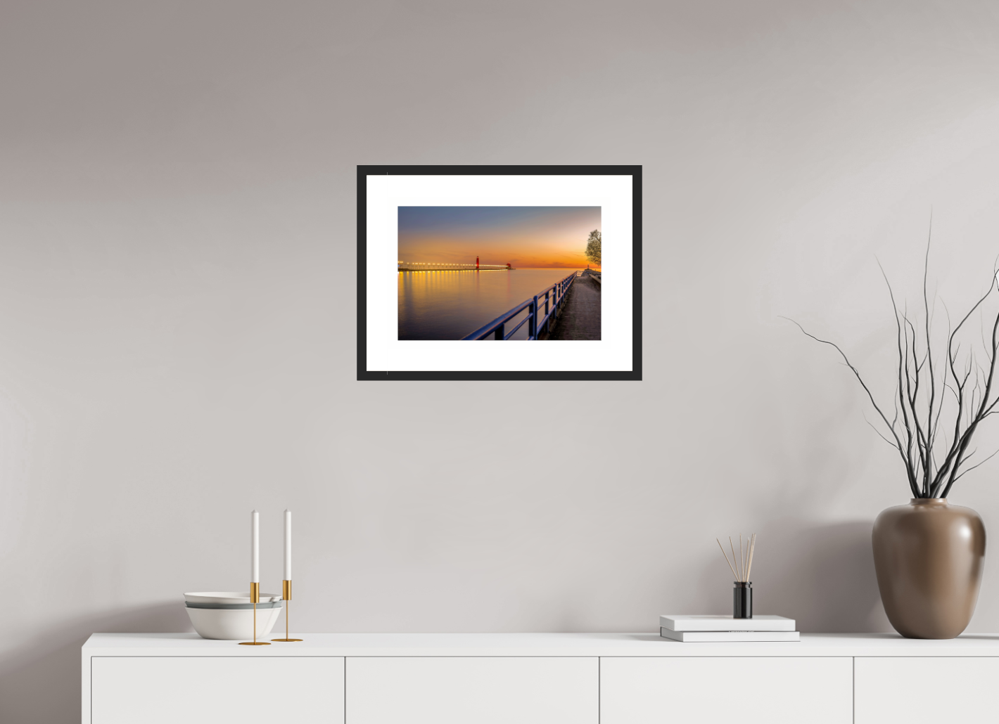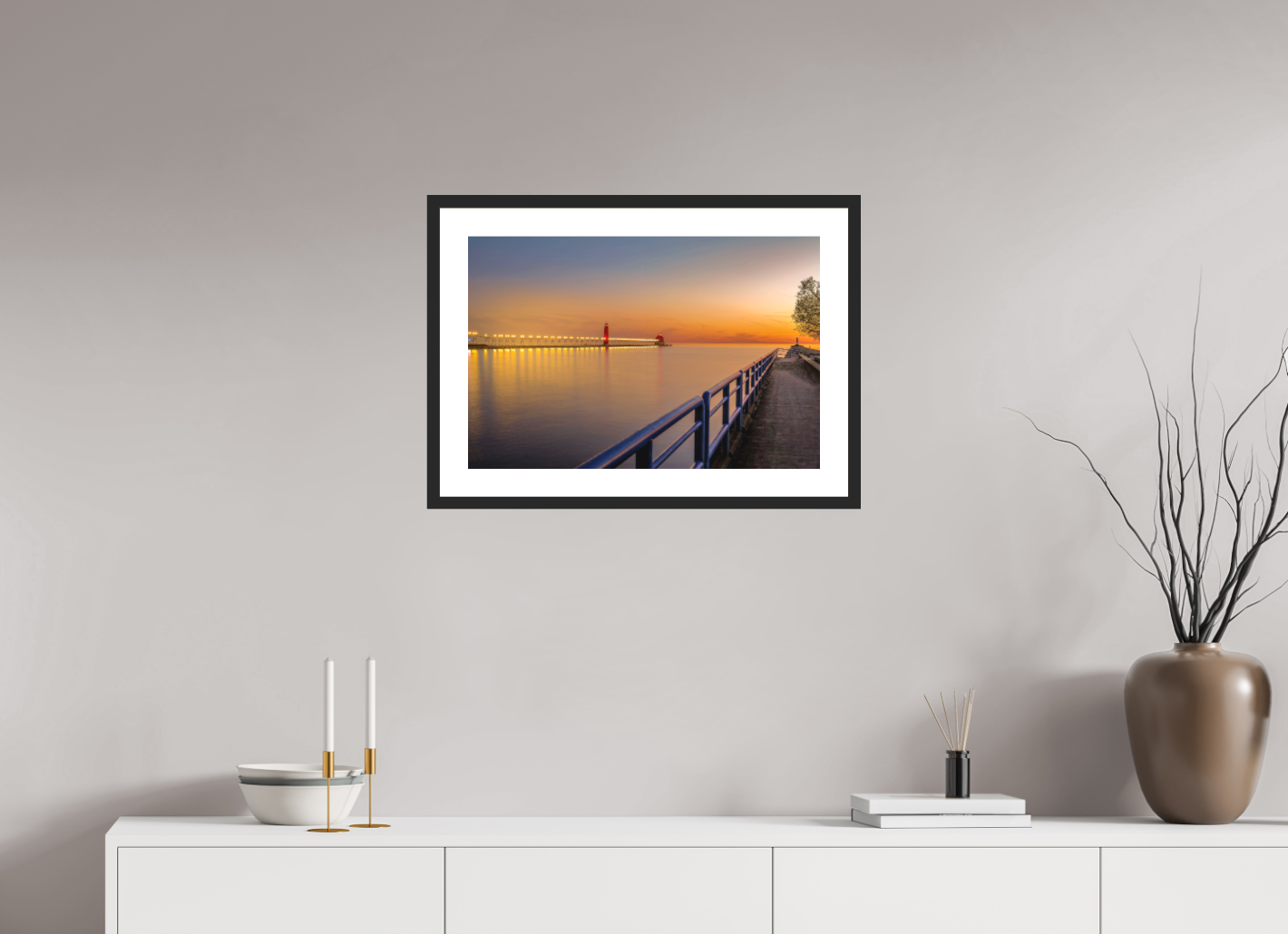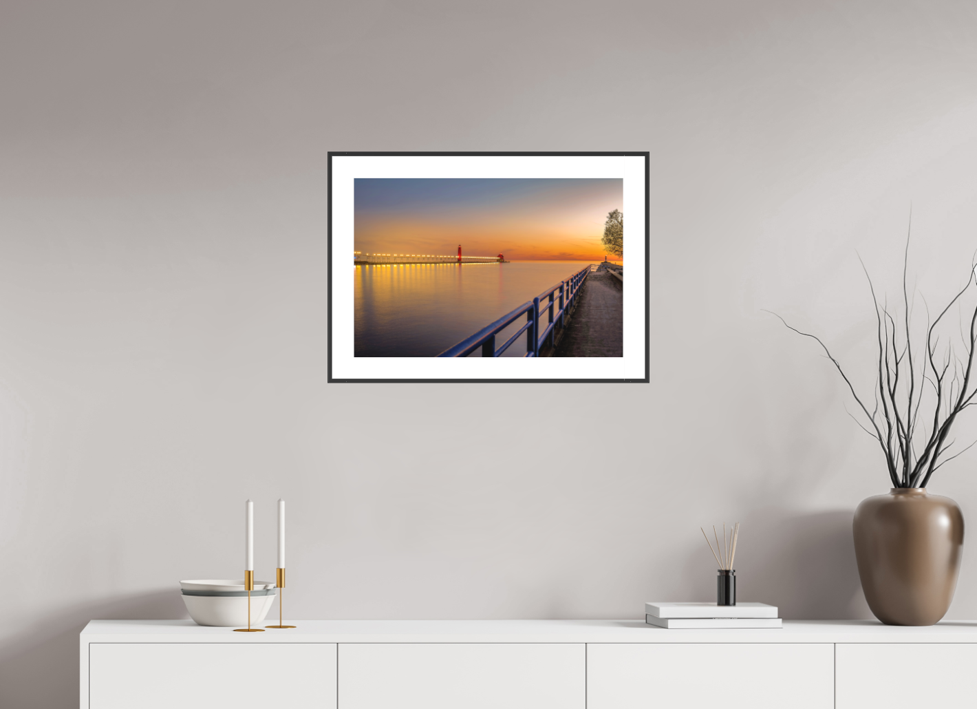 Bring the magic of Grand Haven's sunsets into your home with this exquisite piece of art that truly captures the essence of tranquility.