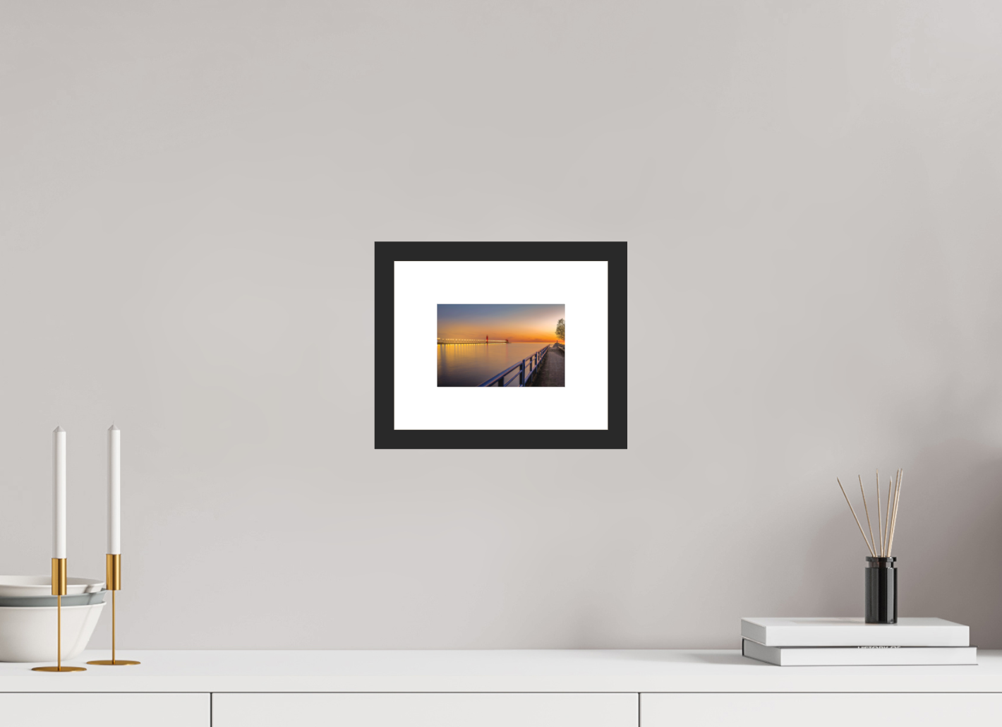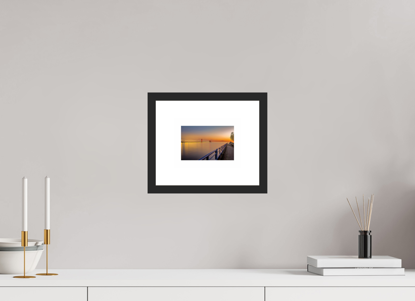 Timeless and elegant. This option pairs a natural wood or black/white frame with a 2″ archival mat for a museum-style display.